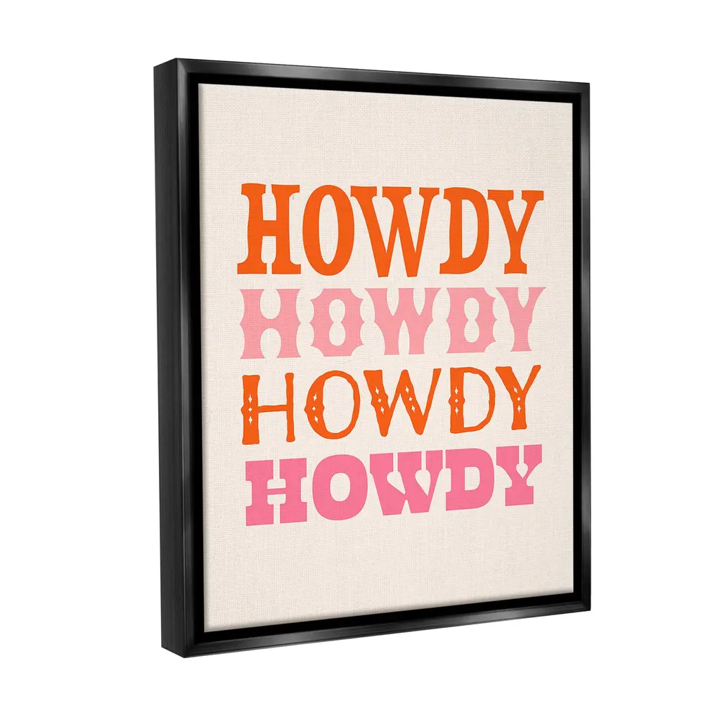 Stupell Howdy Country Typography Framed Floater Canvas Wall Art Design By Victoria Barnes - 25 X 31 - Black