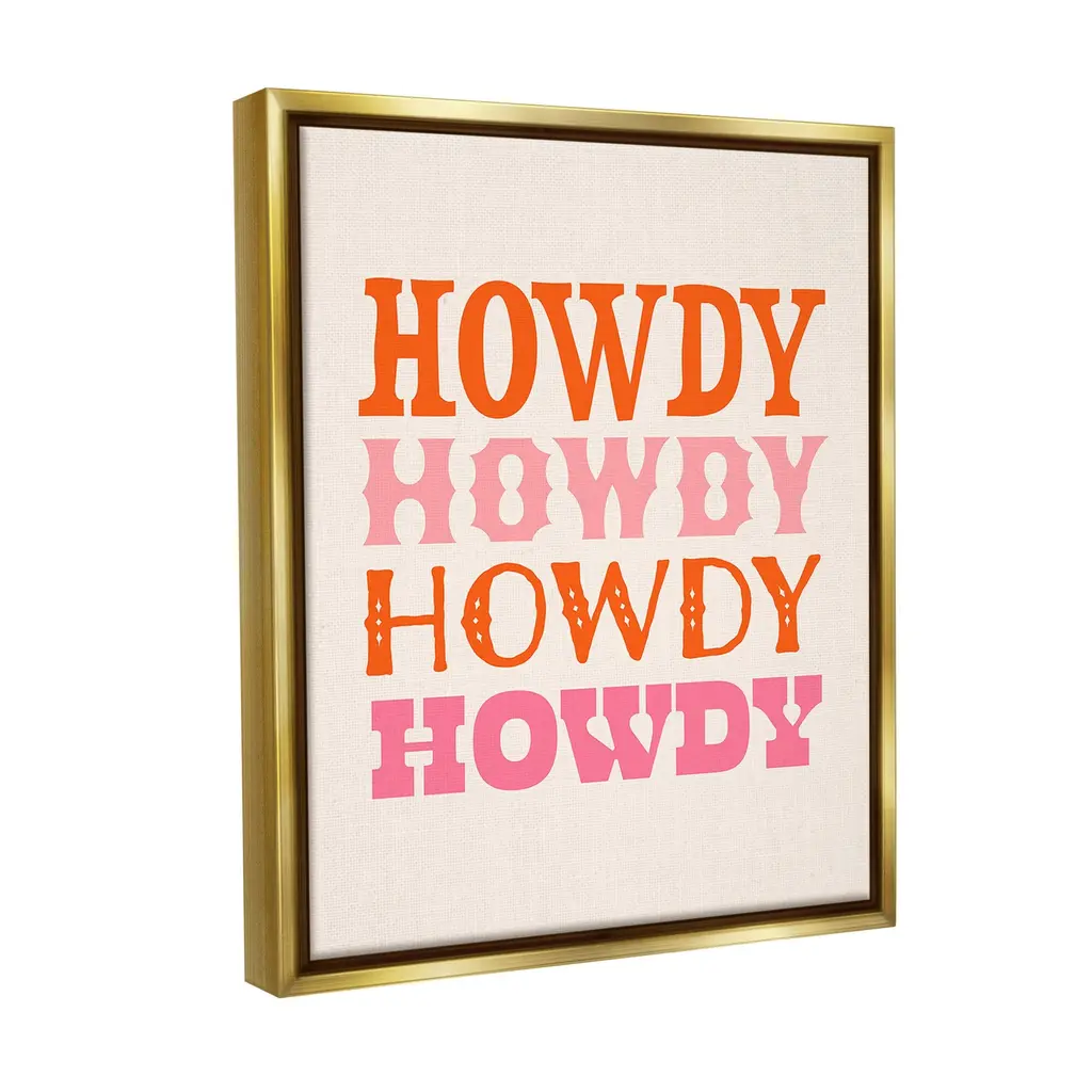 Stupell Howdy Country Typography Framed Floater Canvas Wall Art Design By Victoria Barnes - 25 X 31 - Gold