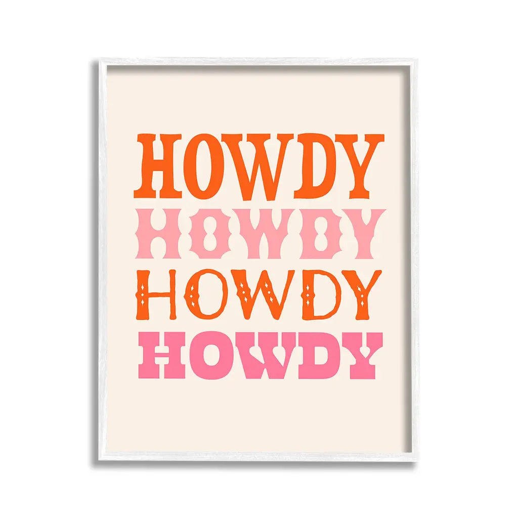 Add dimension to any room with our textured Framed Giclee Artwork. Our framed artwork is securely mounted into a 1.5-inch thick wood grain frame and ready to hang. Frames are available in three alluring styles: black, gray farmhouse and white. In addition, you should check out our oversized options if you want a statement piece. Stupell Wall Art is made in the USA.Features: Dimensions: 11 x 1.5 x 14 FramedFramed Giclee Products are available in the sizes 11"x14", 16"x20" or 24"x30". All Framed Giclee Products have a 1.5" Depth. Wall Art is Ready to Hang with Hardware Free Hanging. No installation required. For Easy Set Up Lean or Layer Artwork on Shelf or Against Wall.Our giclée prints are carefully mounted on a durable MDF backing, and then perfectly finished in a 1.5 inch thick woodgrain frame. Mounted frame colors include black, gray farmhouse and white. Made In USA.Artwork Relates To: Animal, Horse, Mammal, Saddle, Equestrian, Rodeo, Country, Southwestern, Cowboy, Cowgirl, Phrase, Humor, HowdyDesign by Victoria Barnes