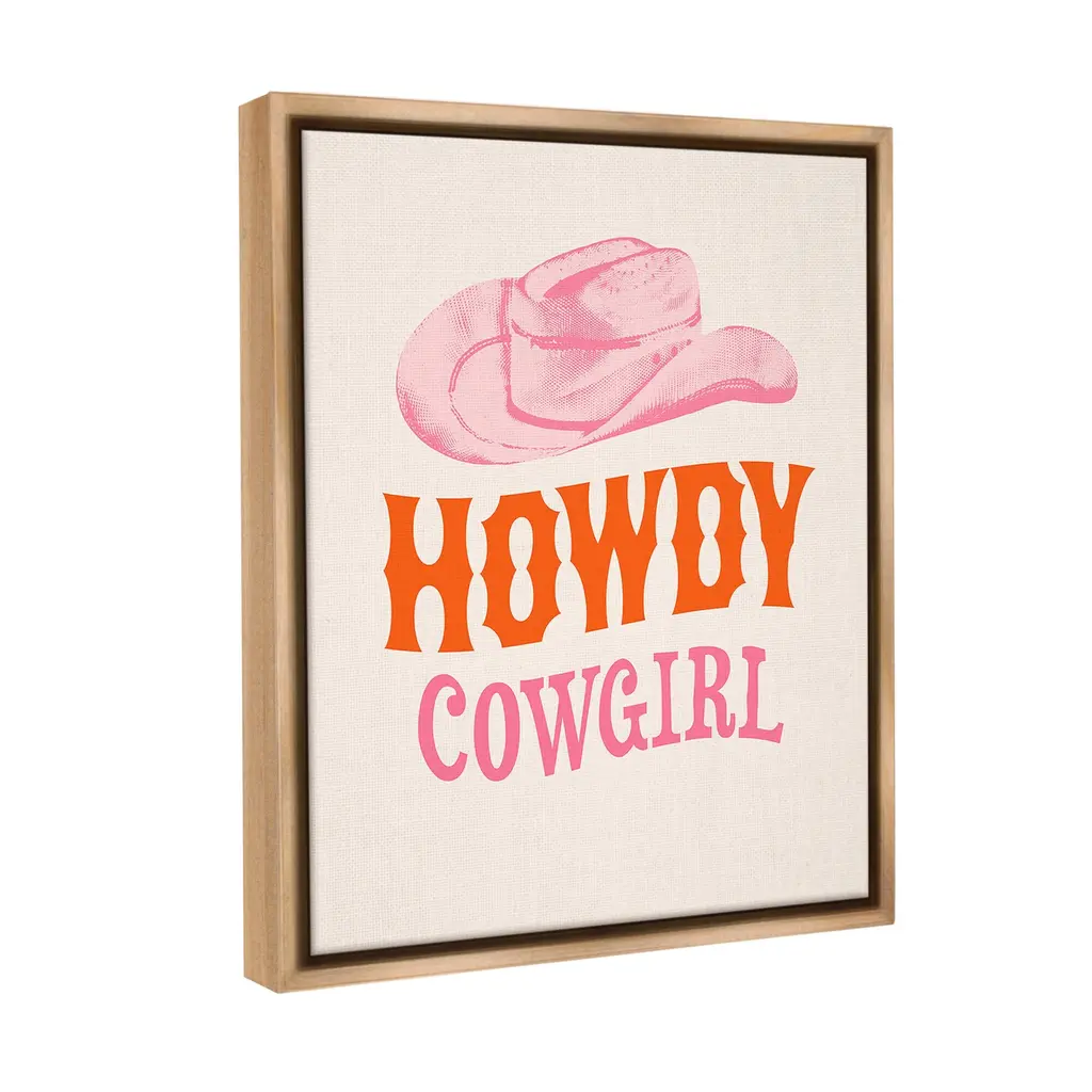 Elevate your home or office to the next level with Stupell Framed Floating Canvas Wall Art. Our premium hand-stretched canvas is mounted securely into a sturdy lightweight frame. The museum-style gap between the wrapped canvas and the box frame gives the illusion of floating artwork. Stupell Wall Art is made in the USA.Features: Dimensions: 17 x 1.7 x 21 Frame, 16 x 1.5 x 20 Canvas ArtFloating Frame Canvas Products are available in sizes 17"x21" and 25"x31". All Floating Frame Canvas Products have a 1.7" Depth.Wall Art is Ready to Hang with Hardware Free Hanging. No Installation required. For Easy Set Up Lean or Layer Artwork on Shelf or Against Wall. Artwork is Permently Fixed into the Frame.Our elevated 1.7" Thick Floating Frame is the perfect complement to our canvas style Wall Art. We use only the highest quality inks in house with industry leading printing solutions. Canvas is hand stretched over a durable wood foundation and then mounted securly into a Modern Box Frame. Made in the USA.Artwork Relates To: Animal, Horse, Mammal, Saddle, Equestrian, Rodeo, Country, Southwestern, Cowboy, Cowgirl, Phrase, Humor, Howdy CowgirlDesign by Victoria Barnes