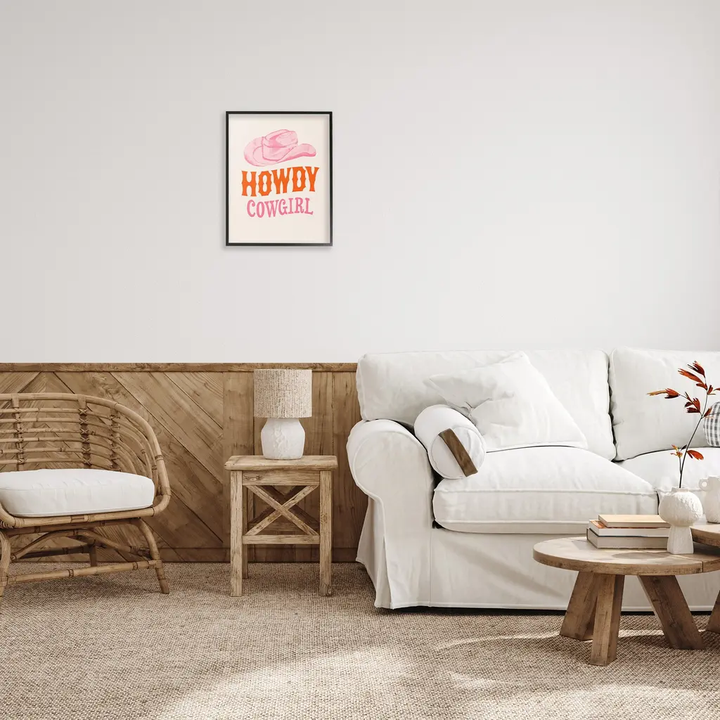 Add dimension to any room with our textured Framed Giclee Artwork. Our framed artwork is securely mounted into a 1.5-inch thick wood grain frame and ready to hang. Frames are available in three alluring styles: black, gray farmhouse and white. In addition, you should check out our oversized options if you want a statement piece. Stupell Wall Art is made in the USA.Features: Dimensions: 11 x 1.5 x 14 FramedFramed Giclee Products are available in the sizes 11"x14", 16"x20" or 24"x30". All Framed Giclee Products have a 1.5" Depth. Wall Art is Ready to Hang with Hardware Free Hanging. No installation required. For Easy Set Up Lean or Layer Artwork on Shelf or Against Wall.Our giclée prints are carefully mounted on a durable MDF backing, and then perfectly finished in a 1.5 inch thick woodgrain frame. Mounted frame colors include black, gray farmhouse and white. Made In USA.Artwork Relates To: Animal, Horse, Mammal, Saddle, Equestrian, Rodeo, Country, Southwestern, Cowboy, Cowgirl, Phrase, Humor, Howdy CowgirlDesign by Victoria Barnes