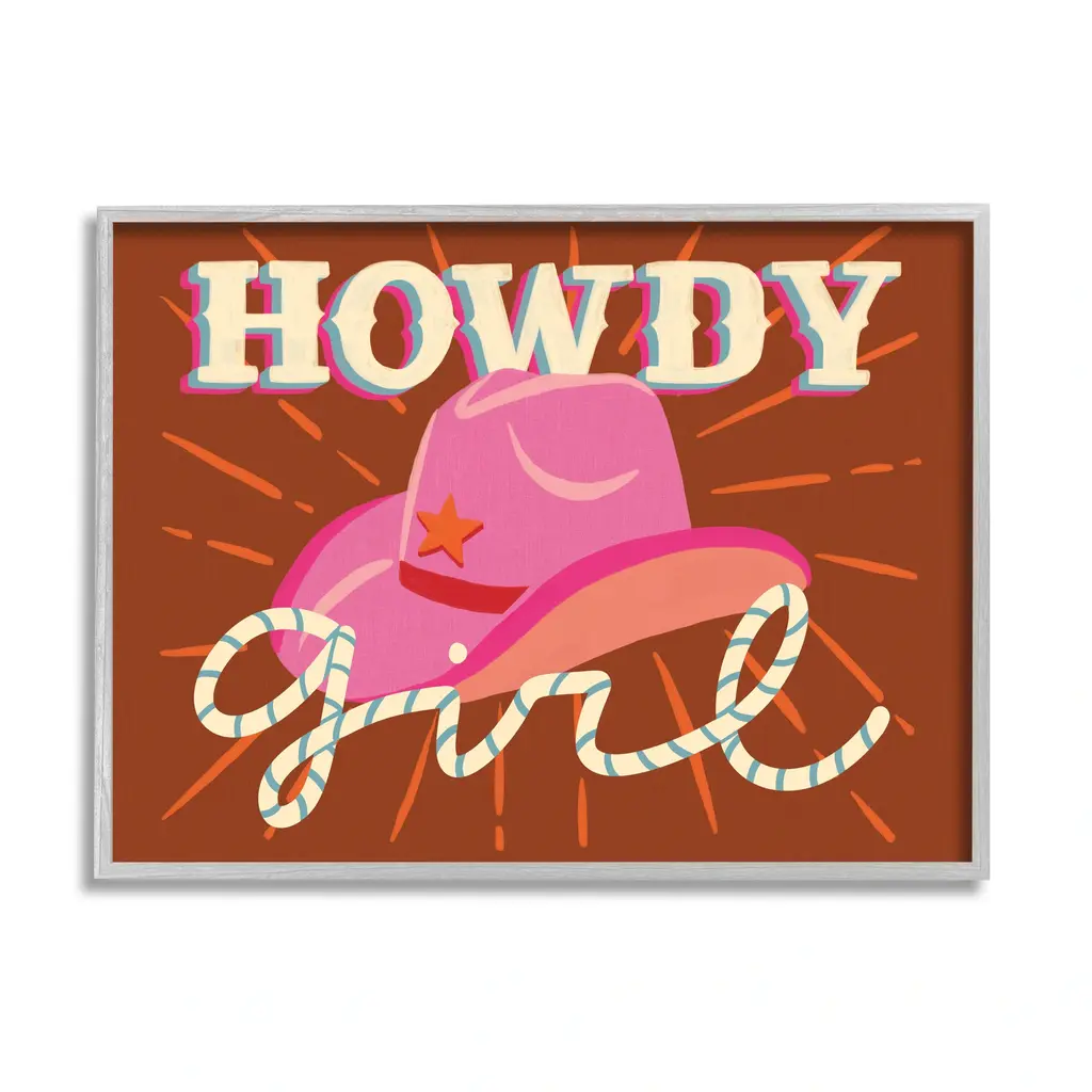 Stupell Howdy Girl Cowboy Hat Phrase Framed Giclee Art By Deborah Curiel - 20 X 16 - Grey