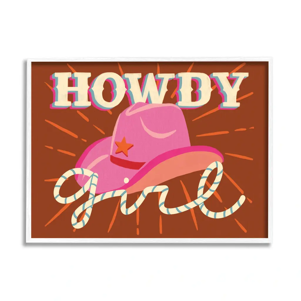 Add dimension to any room with our textured Framed Giclee Artwork. Our framed artwork is securely mounted into a 1.5-inch thick wood grain frame and ready to hang. Frames are available in three alluring styles: black, gray farmhouse and white. In addition, you should check out our oversized options if you want a statement piece. Stupell Wall Art is made in the USA.Features: Dimensions: 14 x 1.5 x 11 FramedFramed Giclee Sizes Include Standard: 14 x 1.5 x 11 Large: 20 x 1.5 x 16 Oversized: 30 x 1.5 x 24Wall Art is Ready to Hang - No Installation or Hardware Needed. For Easy Set Up Lean or Layer Artwork on Shelf or Against Wall.Our giclée prints are carefully mounted on a durable MDF backing, and then perfectly finished in a 1.5 inch thick woodgrain frame. Mounted frame colors include black, gray farmhouse and white. Made In USA.Artwork Relates To: Cowboy Hat, Country, Western, Cowgirl, Howdy GirlDesign by Deborah Curiel