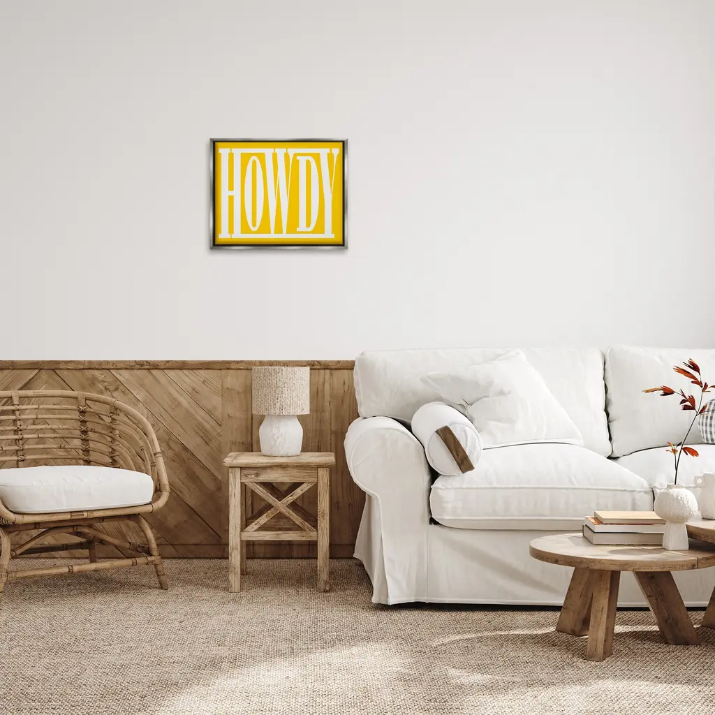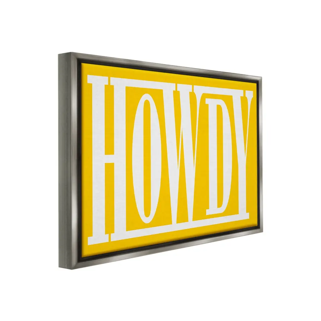 Stupell Howdy Phrase On Yellow Framed Floater Canvas Wall Art Design By Grace Popp - 21 X 17 - Grey