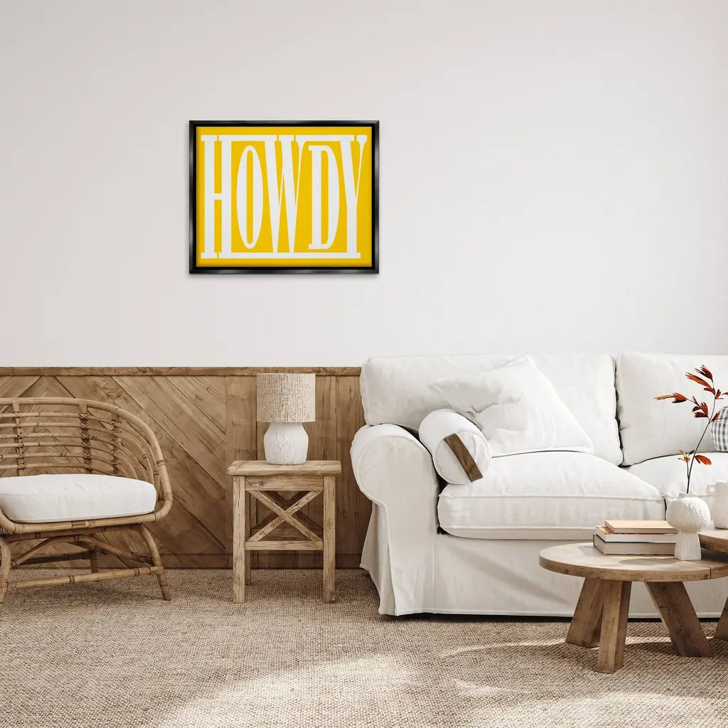 Stupell Howdy Phrase On Yellow Framed Floater Canvas Wall Art Design By Grace Popp - 31 X 25 - Black
