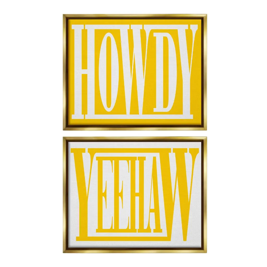 Stupell Howdy Phrase On Yellow Framed Floater Canvas Wall Art Design By Grace Popp - 31 X 25 - Gold