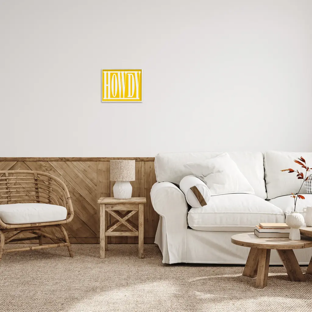 Stupell Howdy Phrase On Yellow Framed Giclee Art Design By Grace Popp - 14 X 11 - White