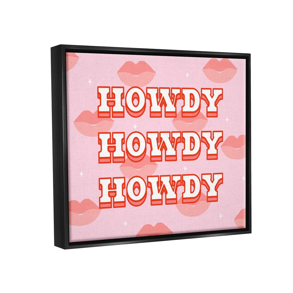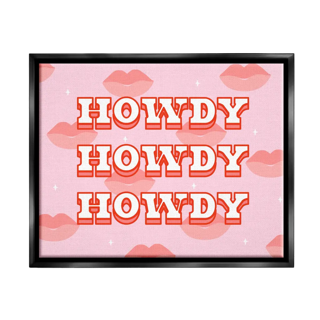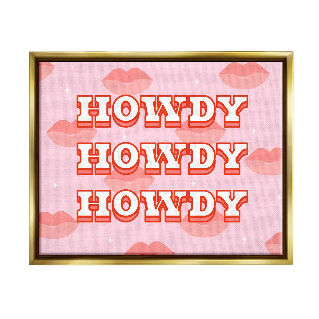 Stupell Howdy Pink Southern Glam Lips Framed Floater Canvas Wall Art By Ziwei Li - 30 X 24 - Gold