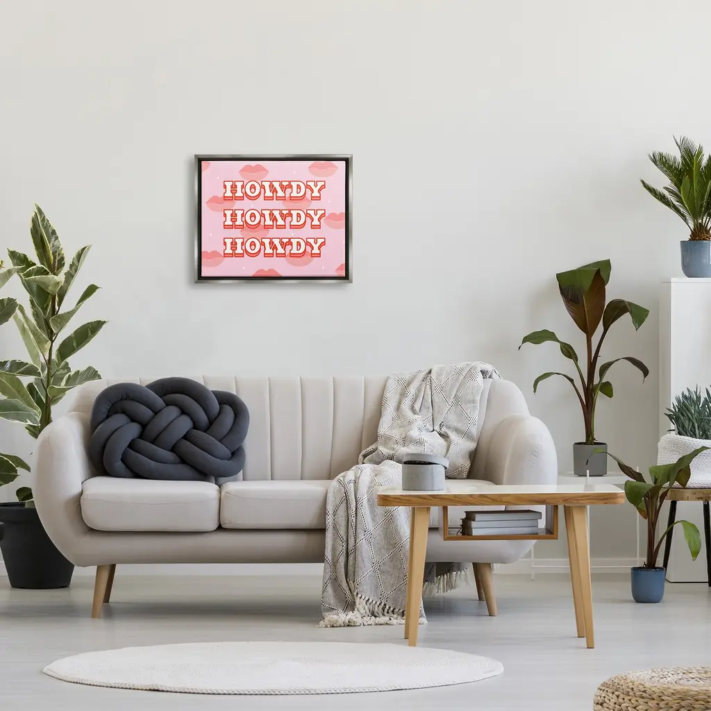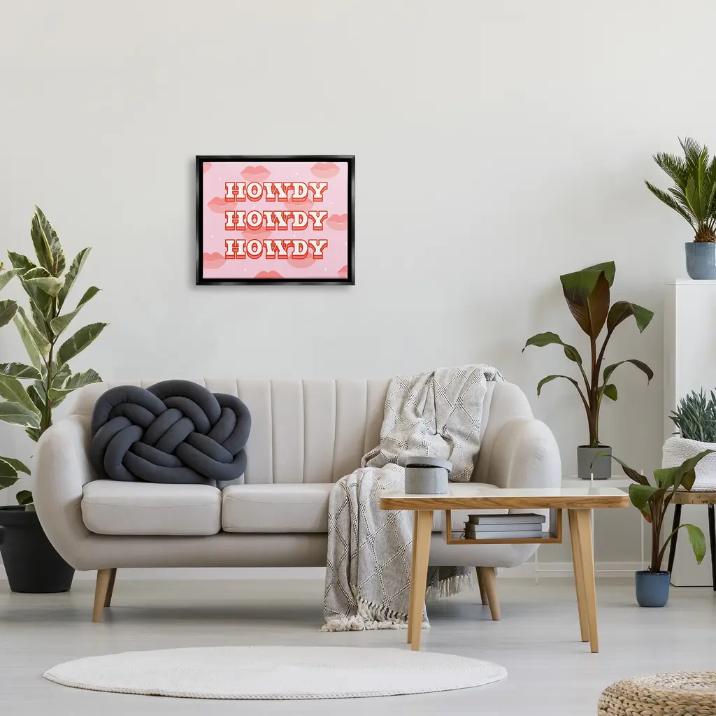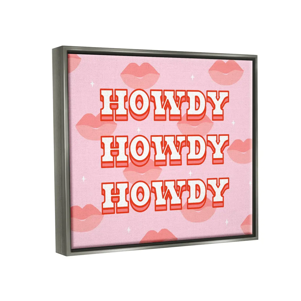 Stupell Howdy Pink Southern Glam Lips Framed Floater Canvas Wall Art By Ziwei Li - 30 X 24 - Gold
