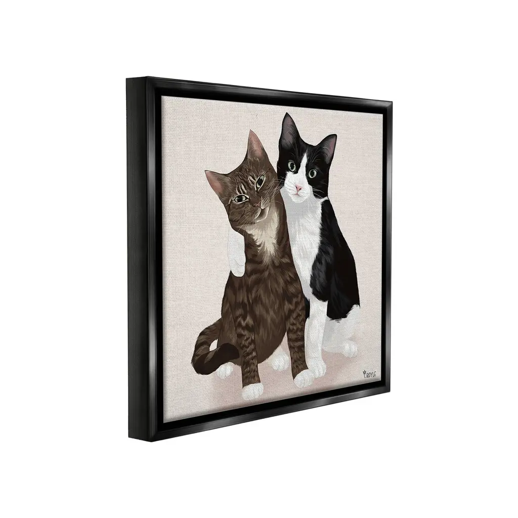 Stupell Hugging Cat Friends Framed Floater Canvas Wall Art Design By Tara Royle - 18 X 18 - Black
