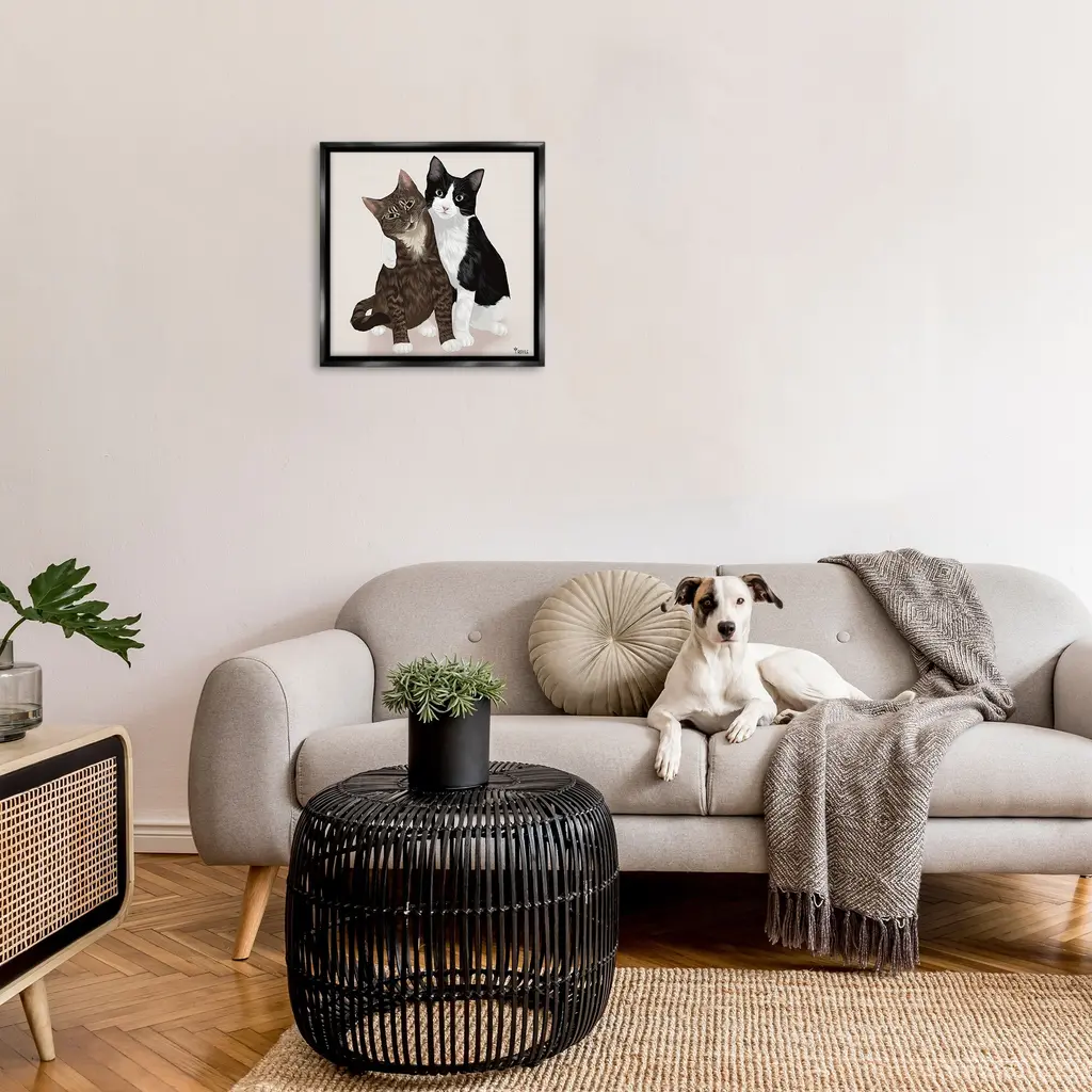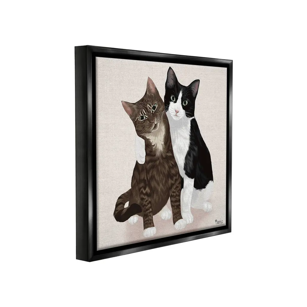 Stupell Hugging Cat Friends Framed Floater Canvas Wall Art Design By Tara Royle - 25 X 25 - Black