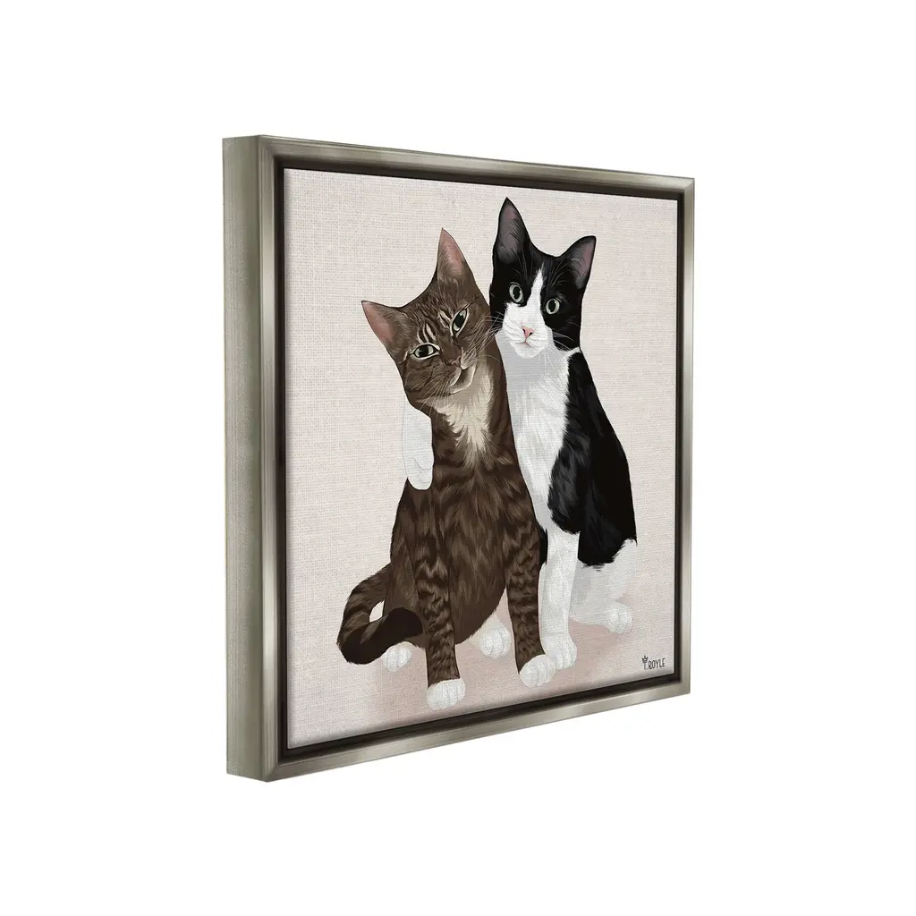 Stupell Hugging Cat Friends Framed Floater Canvas Wall Art Design By Tara Royle - 25 X 25 - Grey