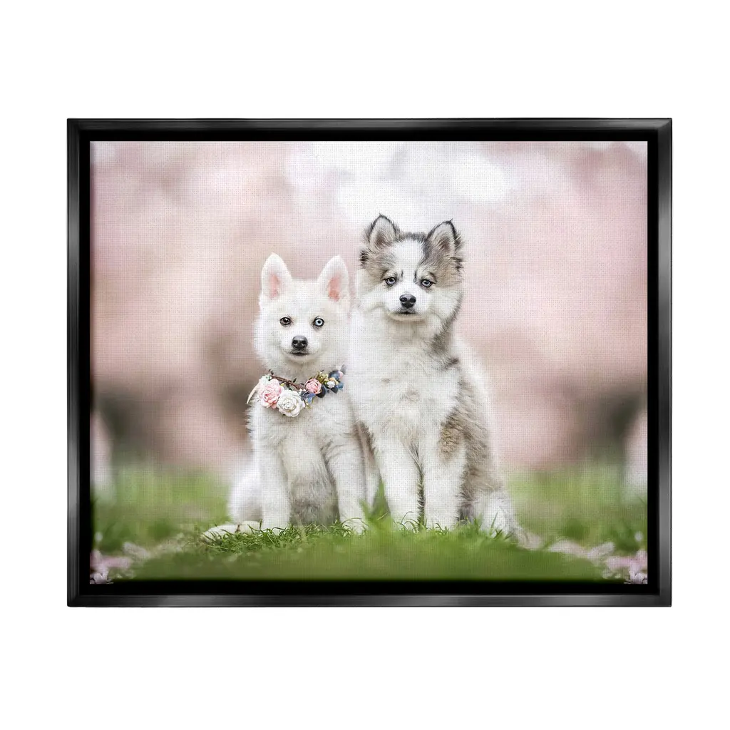 Elevate your home or office to the next level with Stupell Framed Floating Canvas Wall Art. Our premium hand-stretched canvas is mounted securely into a sturdy lightweight frame. The museum-style gap between the wrapped canvas and the box frame gives the illusion of floating artwork. Stupell Wall Art is made in the USA.Features: Dimensions: 21 x 1.7 x 17 Frame, 20 x 1.5 x 16 Canvas ArtFloating Frame Canvas Products are available in sizes 21"x17" and 31"x25". All Floating Frame Canvas Products have a 1.7" Depth.Wall Art is Ready to Hang with Hardware Free Hanging. No Installation required. For Easy Set Up Lean or Layer Artwork on Shelf or Against Wall. Artwork is Permently Fixed into the Frame.Our elevated 1.7" Thick Floating Frame is the perfect complement to our canvas style Wall Art. We use only the highest quality inks in house with industry leading printing solutions. Canvas is hand stretched over a durable wood foundation and then mounted securly into a Modern Box Frame. Made in the USA.Artwork Relates To: Animal, Canine, Mammal, Pet, Dog, Puppy, Hug, BokehDesign by Natalie Grosse