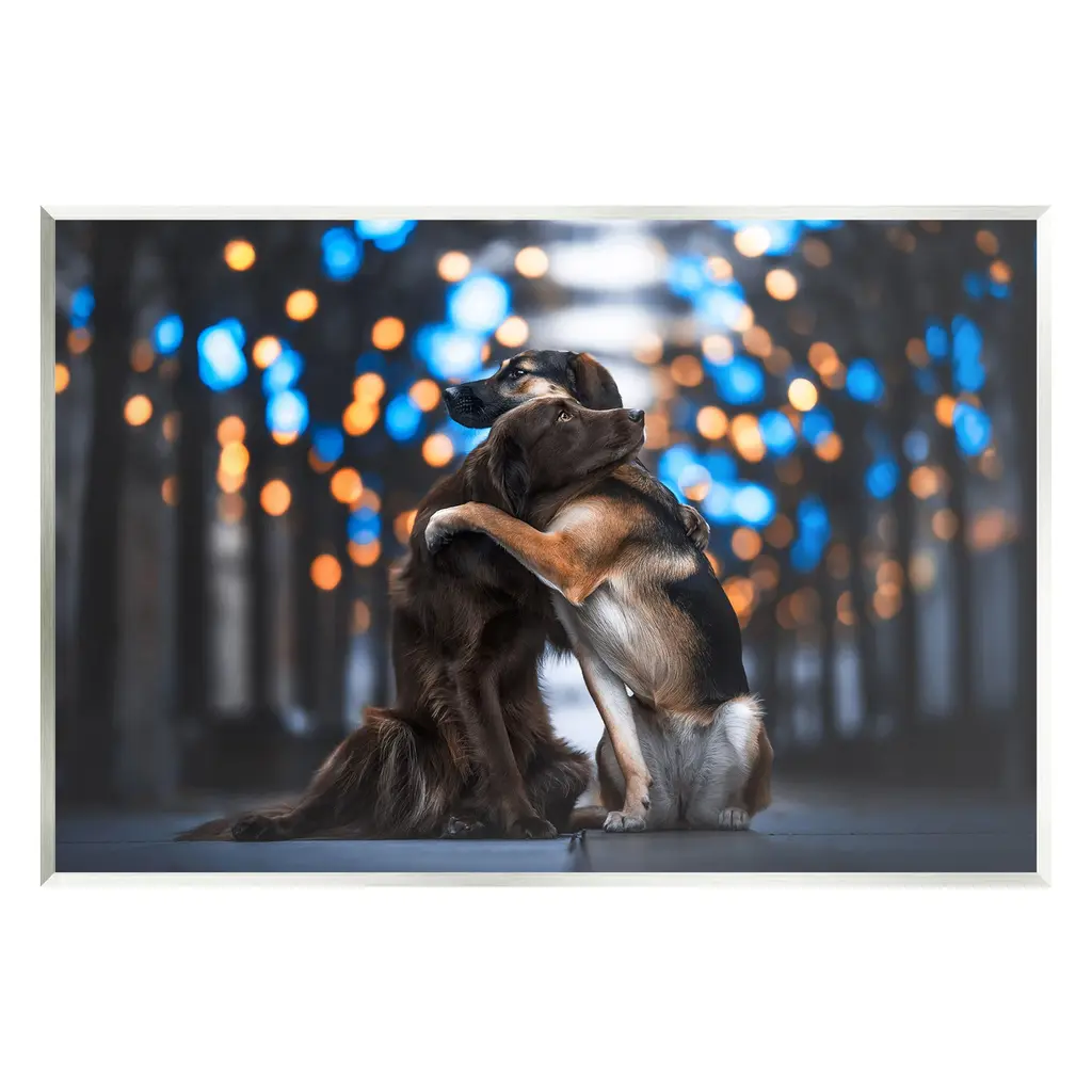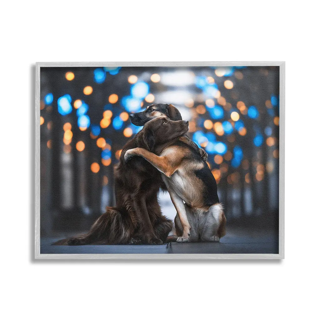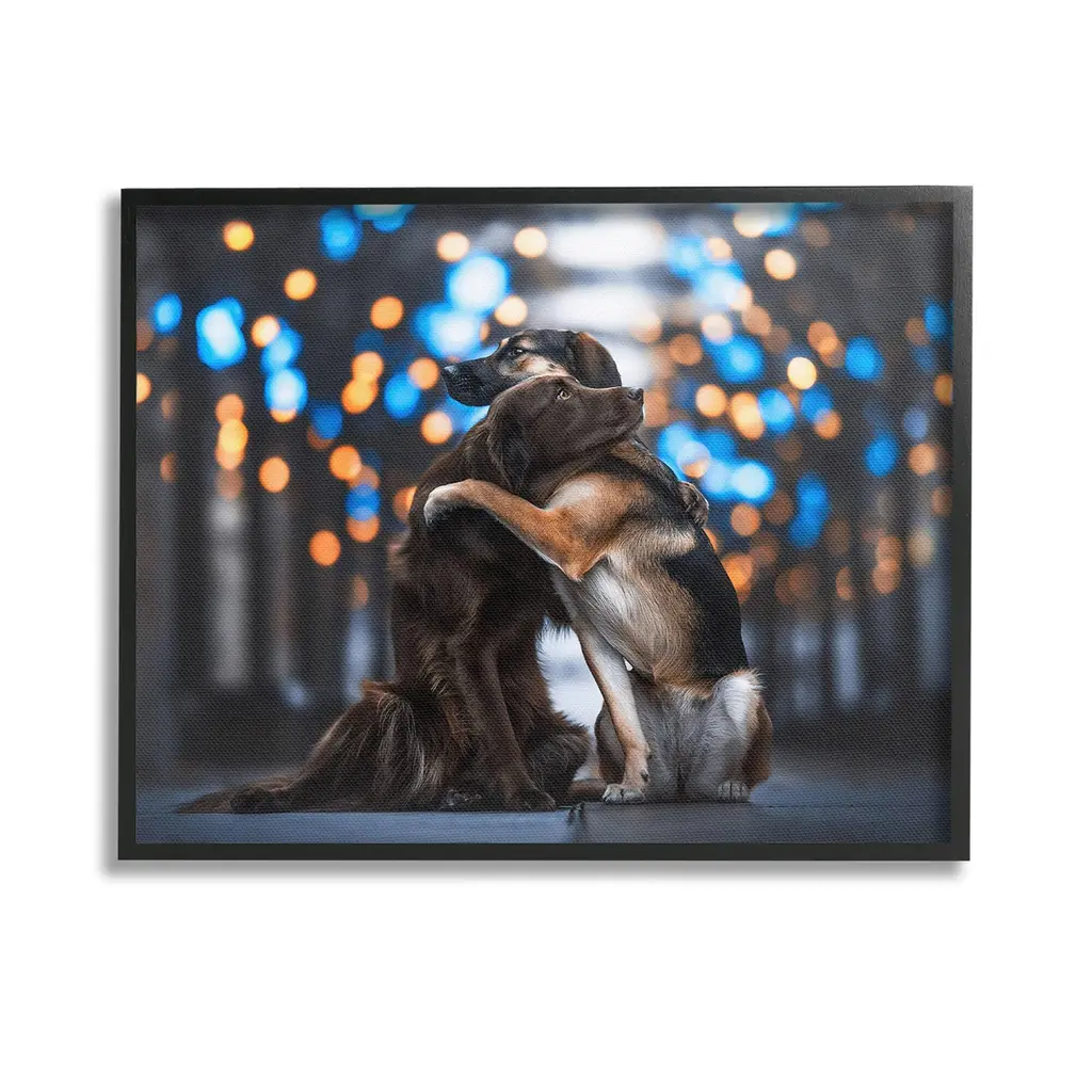Stupell Hugging Dogs With Bokeh Framed Giclee Art Design By Natalie Grosse - 20 X 16 - Black