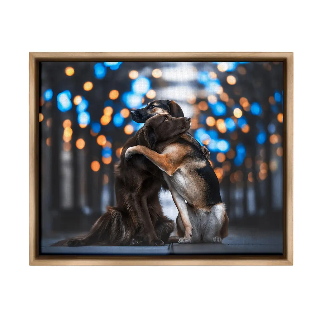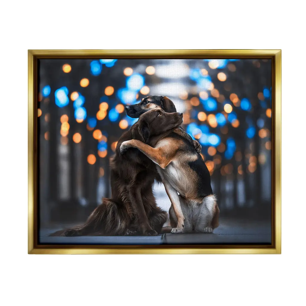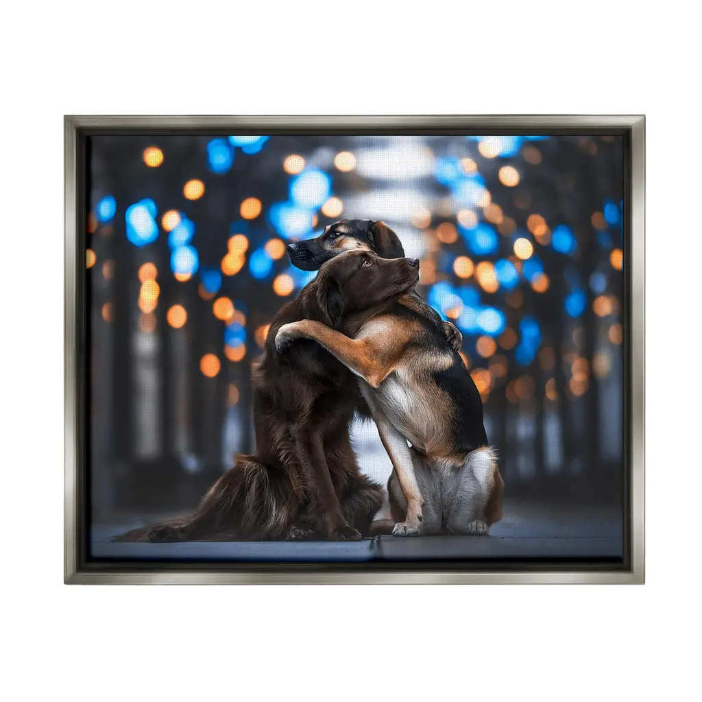 Stupell Hugging Dogs With Bokeh Framed Giclee Art Design By Natalie Grosse - 20 X 16 - Black