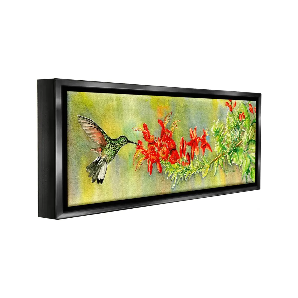 Elevate your home or office to the next level with Stupell Framed Floating Canvas Wall Art. Our premium hand-stretched canvas is mounted securely into a sturdy lightweight frame. The museum-style gap between the wrapped canvas and the box frame gives the illusion of floating artwork. Stupell Wall Art is made in the USA.Features: Dimensions: 25 x 1.7 x 11 Frame, 24 x 1.5 x 10 Canvas ArtFloating Frame Canvas Products are available in sizes 25"x11" and 31"x14". All Floating Frame Canvas Products have a 1.7" Depth.Wall Art is Ready to Hang with Hardware Free Hanging. No Installation required. For Easy Set Up Lean or Layer Artwork on Shelf or Against Wall. Artwork is Permently Fixed into the Frame.Our elevated 1.7" Thick Floating Frame is the perfect complement to our canvas style Wall Art. We use only the highest quality inks in house with industry leading printing solutions. Canvas is hand stretched over a durable wood foundation and then mounted securly into a Modern Box Frame. Made in the USA.Artwork Relates To: Animal, Bird, Hummingbird, Flying, Beak, Flower, Plant, Flower, Hibiscus, LilyDesign by Christine Reichow