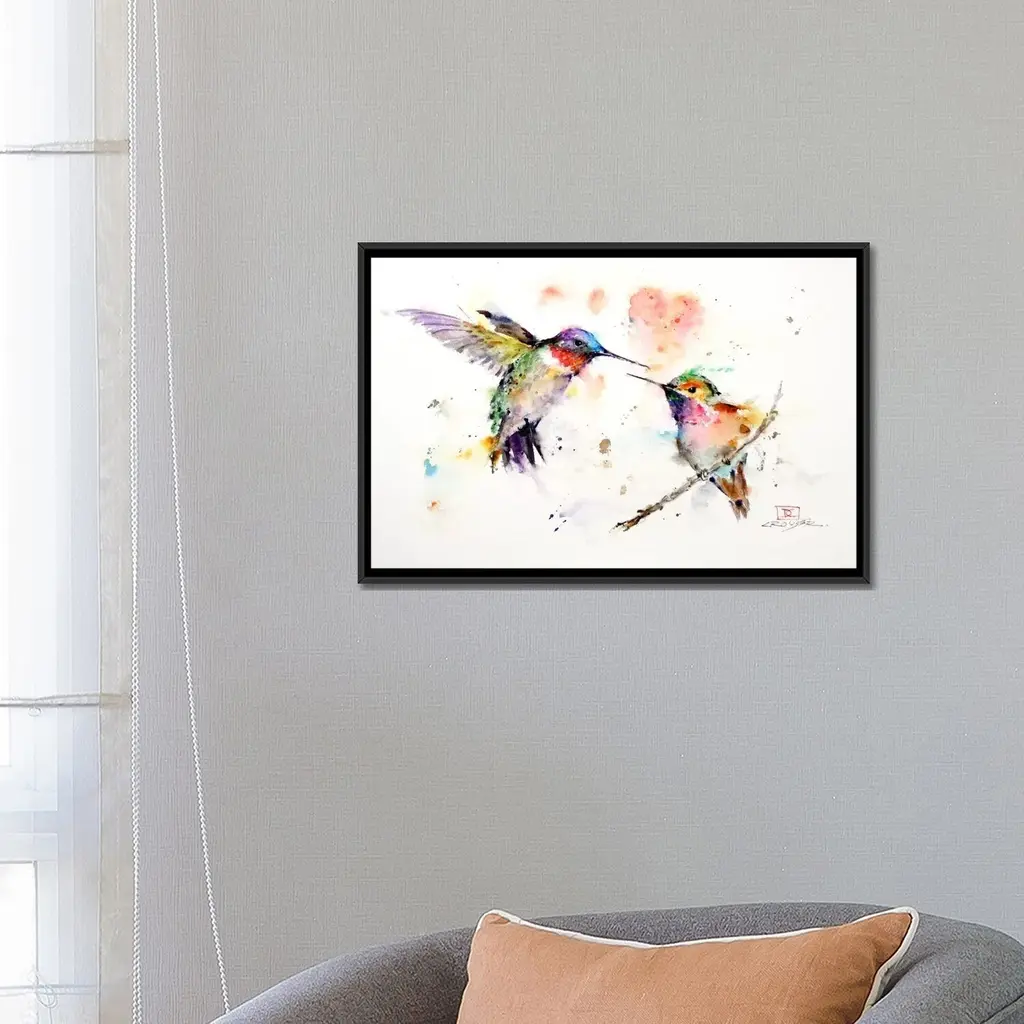 Elevate your home or office to the next level with Stupell Framed Floating Canvas Wall Art. Our premium hand-stretched canvas is mounted securely into a sturdy lightweight frame. The museum-style gap between the wrapped canvas and the box frame gives the illusion of floating artwork. Stupell Wall Art is made in the USA.Features: Dimensions: 25 x 1.7 x 11 Frame, 24 x 1.5 x 10 Canvas ArtFloating Frame Canvas Products are available in sizes 25"x11" and 31"x14". All Floating Frame Canvas Products have a 1.7" Depth.Wall Art is Ready to Hang with Hardware Free Hanging. No Installation required. For Easy Set Up Lean or Layer Artwork on Shelf or Against Wall. Artwork is Permently Fixed into the Frame.Our elevated 1.7" Thick Floating Frame is the perfect complement to our canvas style Wall Art. We use only the highest quality inks in house with industry leading printing solutions. Canvas is hand stretched over a durable wood foundation and then mounted securly into a Modern Box Frame. Made in the USA.Artwork Relates To: Animal, Bird, Hummingbird, Flying, Beak, Flower, Plant, Flower, Hibiscus, LilyDesign by Christine Reichow