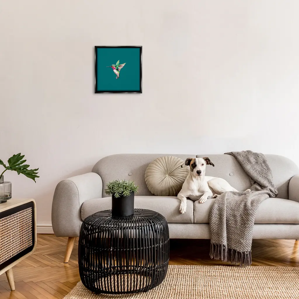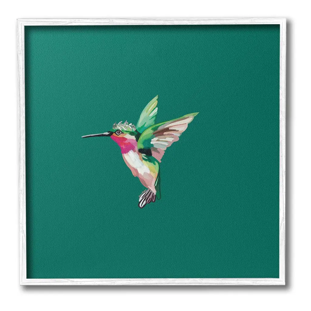 Elevate your home or office to the next level with Stupell Framed Floating Canvas Wall Art. Our premium hand-stretched canvas is mounted securely into a sturdy lightweight frame. The museum-style gap between the wrapped canvas and the box frame gives the illusion of floating artwork. Stupell Wall Art is made in the USA.Features: Dimensions: 18 x 1.7 x 18 Frame, 17 x 1.5 x 17 Canvas ArtFloating Frame Canvas Products are available in sizes 18"x18" and 25"x25". All Floating Frame Canvas Products have a 1.7" Depth.Wall Art is Ready to Hang with Hardware Free Hanging. No Installation required. For Easy Set Up Lean or Layer Artwork on Shelf or Against Wall. Artwork is Permently Fixed into the Frame.Our elevated 1.7" Thick Floating Frame is the perfect complement to our canvas style Wall Art. We use only the highest quality inks in house with industry leading printing solutions. Canvas is hand stretched over a durable wood foundation and then mounted securly into a Modern Box Frame. Made in the USA.Artwork Relates To: Animal, Bird, Flying, Hummingbird, Bee Eater, Beak, Design by Amelia Noyes