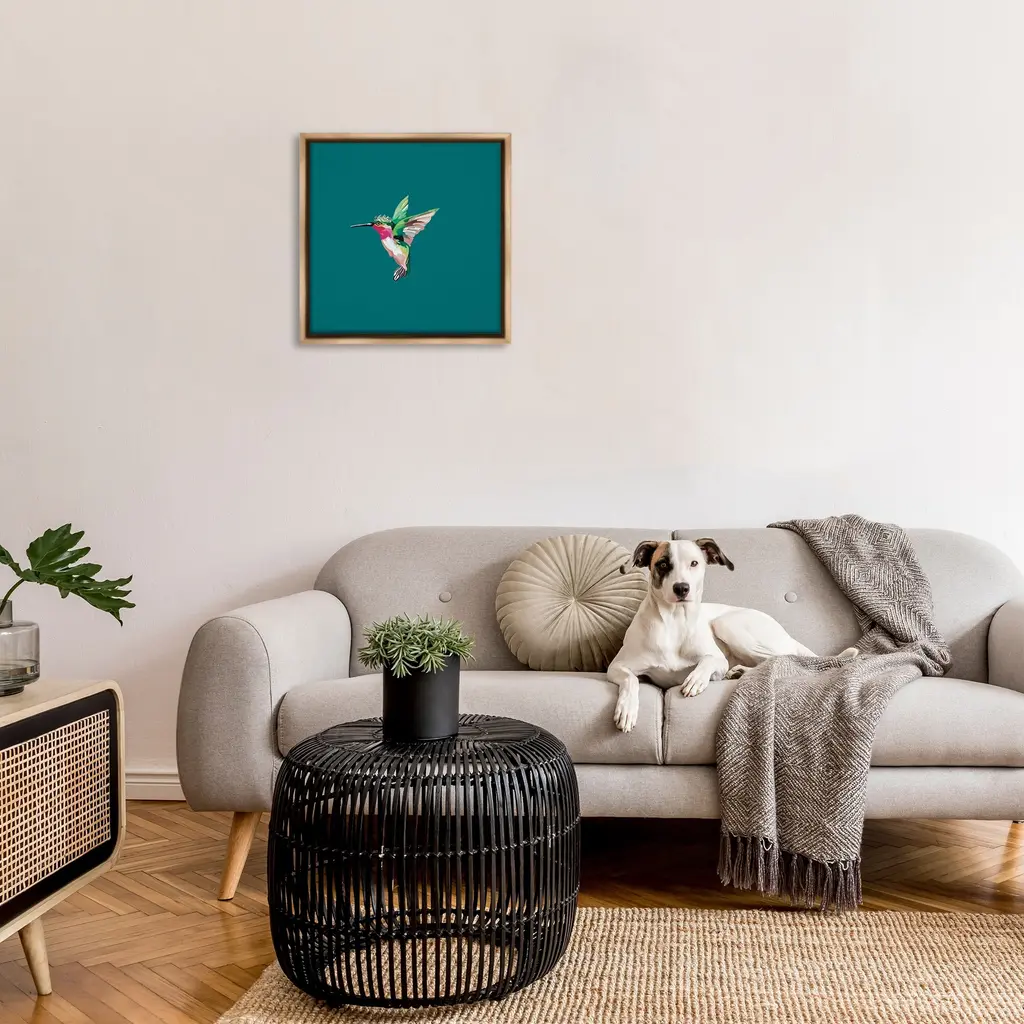 Elevate your home or office to the next level with Stupell Framed Floating Canvas Wall Art. Our premium hand-stretched canvas is mounted securely into a sturdy lightweight frame. The museum-style gap between the wrapped canvas and the box frame gives the illusion of floating artwork. Stupell Wall Art is made in the USA.Features: Dimensions: 18 x 1.7 x 18 Frame, 17 x 1.5 x 17 Canvas ArtFloating Frame Canvas Products are available in sizes 18"x18" and 25"x25". All Floating Frame Canvas Products have a 1.7" Depth.Wall Art is Ready to Hang with Hardware Free Hanging. No Installation required. For Easy Set Up Lean or Layer Artwork on Shelf or Against Wall. Artwork is Permently Fixed into the Frame.Our elevated 1.7" Thick Floating Frame is the perfect complement to our canvas style Wall Art. We use only the highest quality inks in house with industry leading printing solutions. Canvas is hand stretched over a durable wood foundation and then mounted securly into a Modern Box Frame. Made in the USA.Artwork Relates To: Animal, Bird, Flying, Hummingbird, Bee Eater, Beak, Design by Amelia Noyes