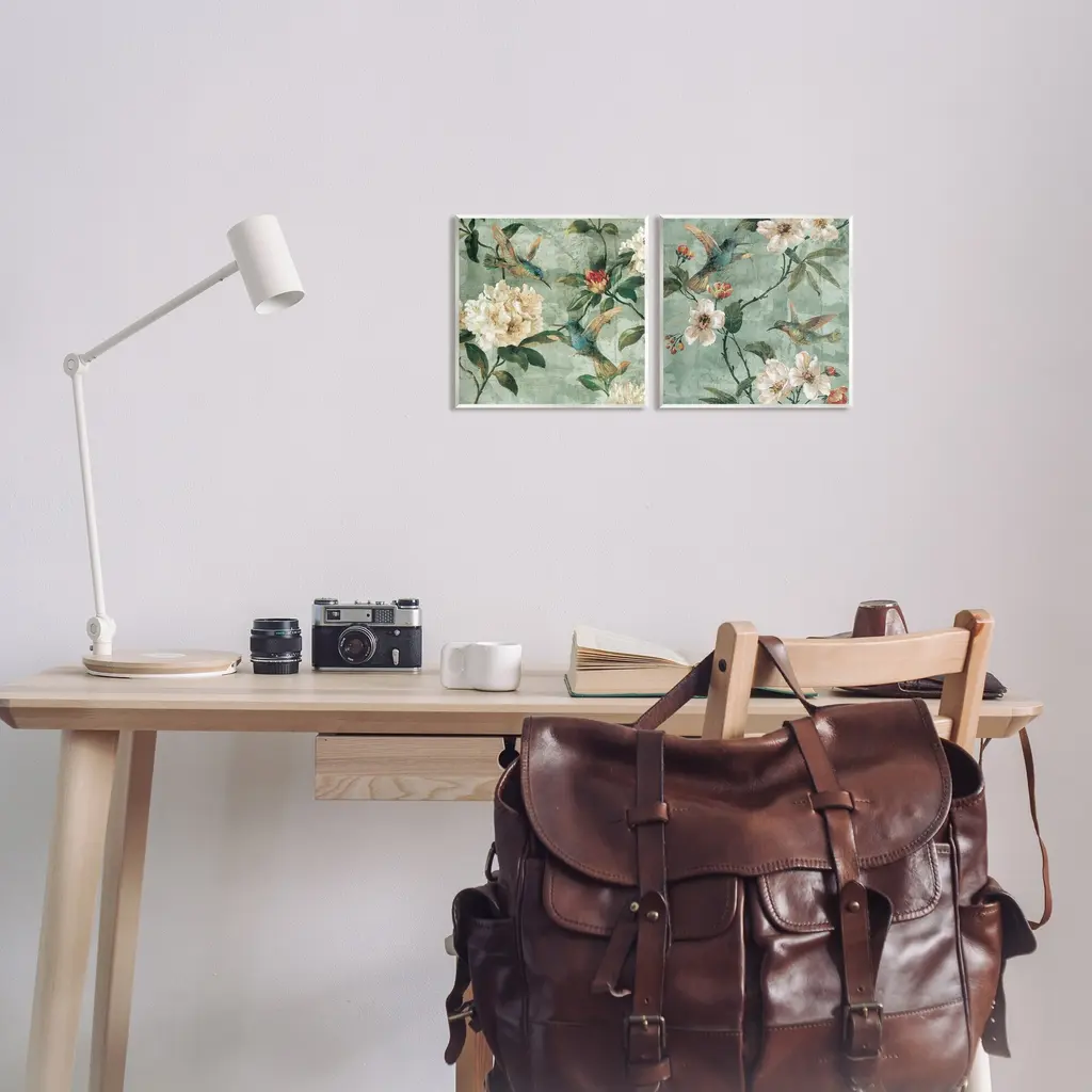 Stupell Hummingbirds & Florals 2 Piece Wall Plaque Art Set Design By Reneé Campbell - 12 X 12