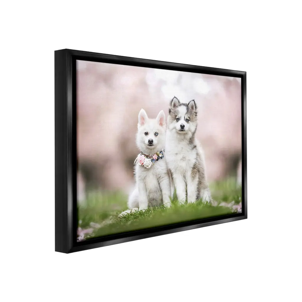Stupell Husky Puppies In Meadow Framed Floater Canvas Wall Art Design By Natalie Grosse - 21 X 17 - Black