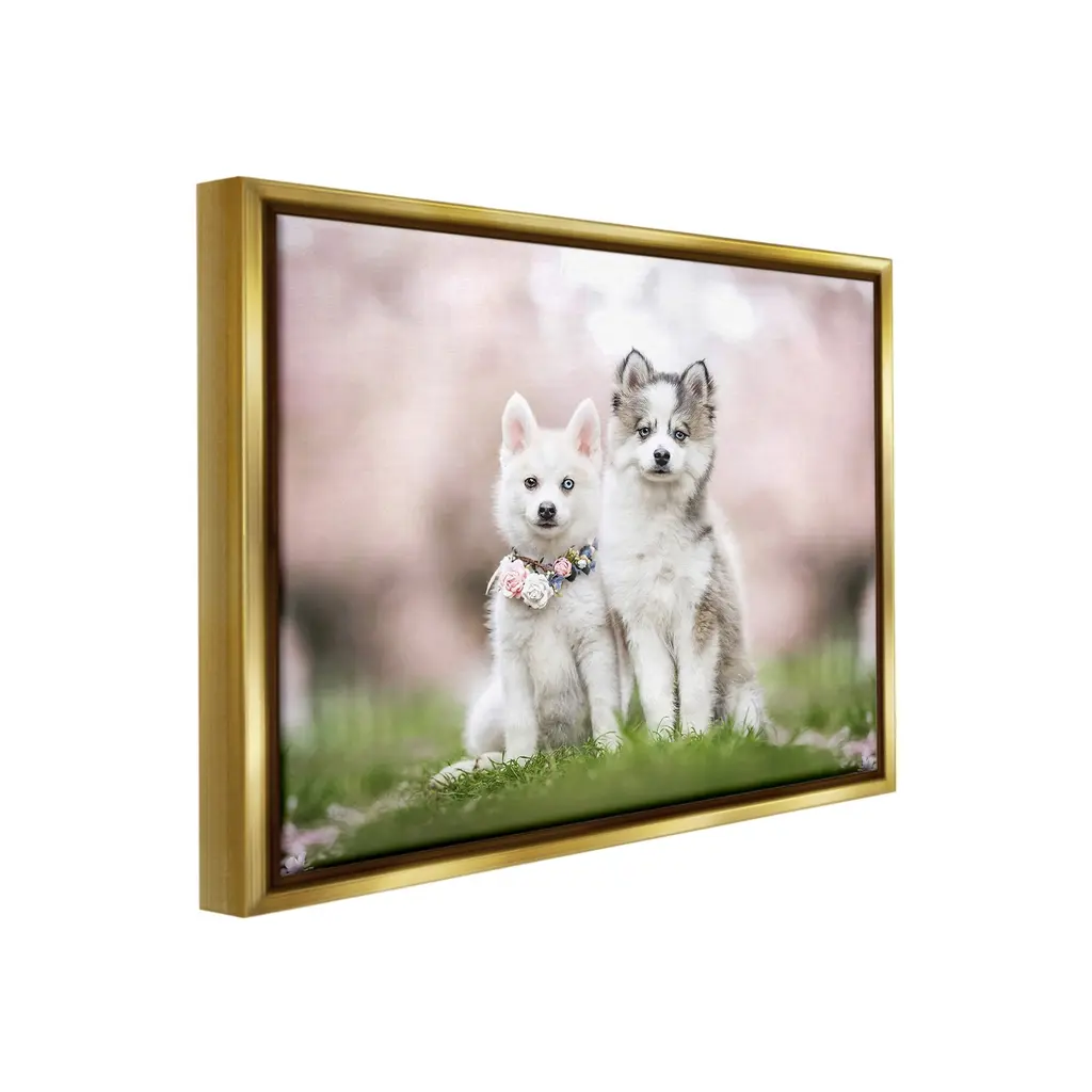 Stupell Husky Puppies In Meadow Framed Floater Canvas Wall Art Design By Natalie Grosse - 21 X 17 - Gold