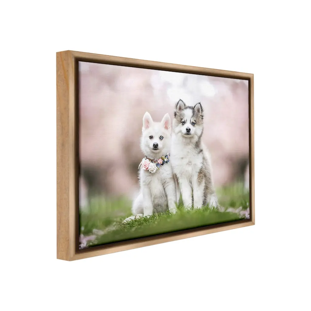 Elevate your home or office to the next level with Stupell Framed Floating Canvas Wall Art. Our premium hand-stretched canvas is mounted securely into a sturdy lightweight frame. The museum-style gap between the wrapped canvas and the box frame gives the illusion of floating artwork. Stupell Wall Art is made in the USA.Features: Dimensions: 21 x 1.7 x 17 Frame, 20 x 1.5 x 16 Canvas ArtFloating Frame Canvas Products are available in sizes 21"x17" and 31"x25". All Floating Frame Canvas Products have a 1.7" Depth.Wall Art is Ready to Hang with Hardware Free Hanging. No Installation required. For Easy Set Up Lean or Layer Artwork on Shelf or Against Wall. Artwork is Permently Fixed into the Frame.Our elevated 1.7" Thick Floating Frame is the perfect complement to our canvas style Wall Art. We use only the highest quality inks in house with industry leading printing solutions. Canvas is hand stretched over a durable wood foundation and then mounted securly into a Modern Box Frame. Made in the USA.Artwork Relates To: Animal, Canine, Dog, Mammal, Pet, Puppy, Husky, White Dog, Eskimo Dog, Meadow, NatureDesign by Natalie Grosse