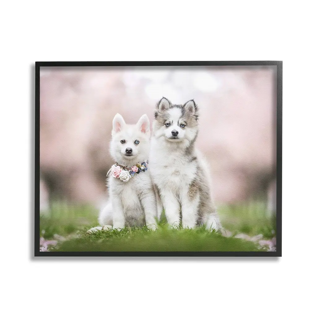 Stupell Husky Puppies In Meadow Framed Giclee Art Design By Natalie Grosse - 14 X 11 - Black