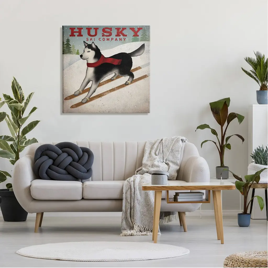 Proudly made in the USA, Our stretched canvas is created with the highest standards. We use only the highest quality inks and canvas on our in house Mimaki printers, and then hand cut and stretch each piece over a 1.5 inch thick wooden frame for hanging. The art comes ready to hang with no installation required. Not to mention, at this size, it is sure to be the focal point of any room!Features:Stretched Canvas Sizes IncludeStandard: 17 x 1.5 x 17Large: 24 x 1.5 x 24X-Large: 30 x 1.5 x 30Oversized: 36 x 1.5 x 36Wall Art is Ready to Hang - No Installation or Hardware Needed. For Easy Set Up Lean or Layer Artwork on Shelf or Against Wall.Artwork Relates To: Dog, Mammal, Canine, Animal, Pet, Husky, Skiing, Winter Sports, Mountain, SlopeOur stretched canvas is created with the highest standards. We use only the highest quality inks and canvas on our in house Mimaki printers, and then hand cut and stretch each piece over a 1.5 inch thick wooden frame for hanging. Made In USA.Design by Ryan Fowler
