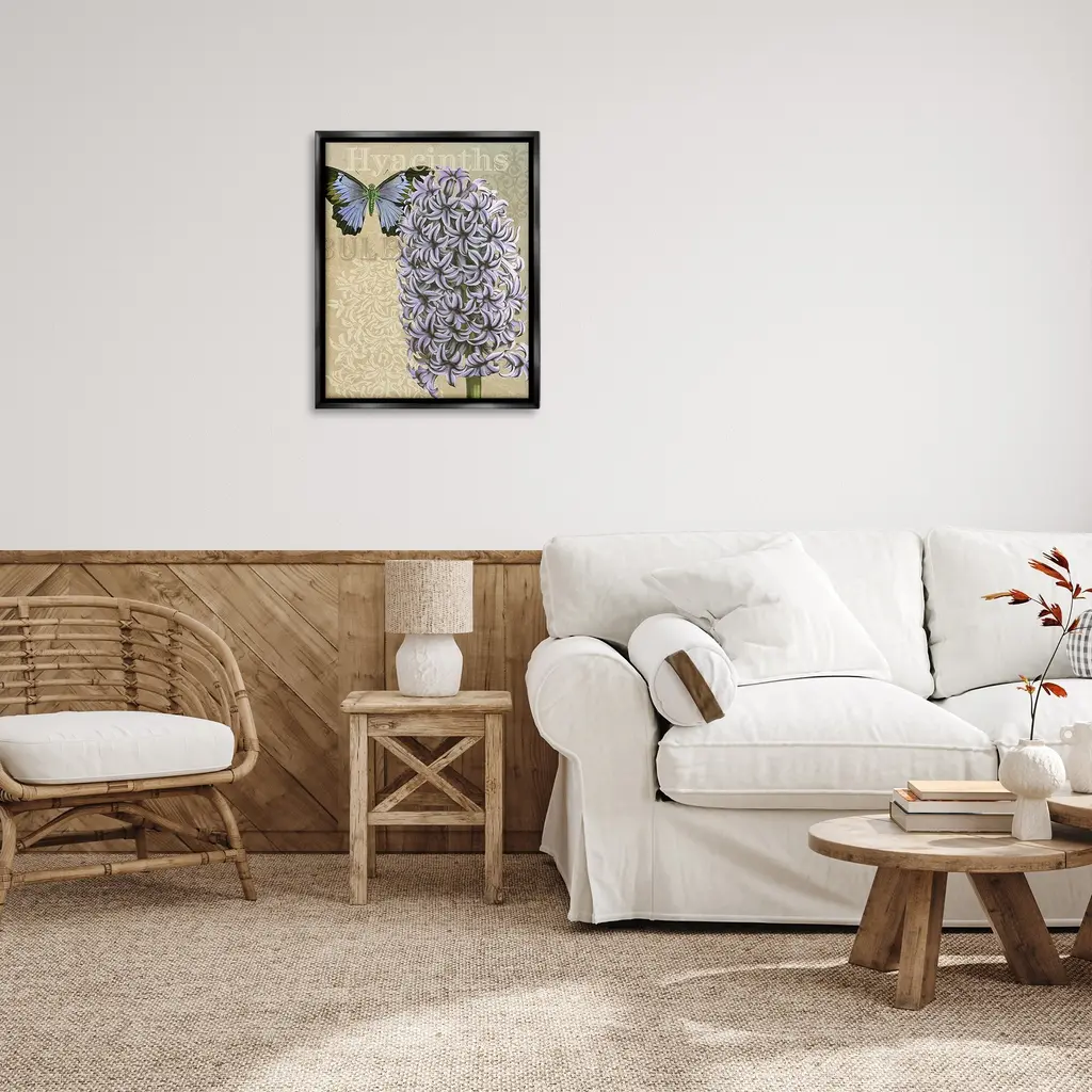 Stupell Hyacinth Pattern & Butterfly Framed Floater Canvas Wall Art Design By Gail Fraser - 25 X 31 - Black