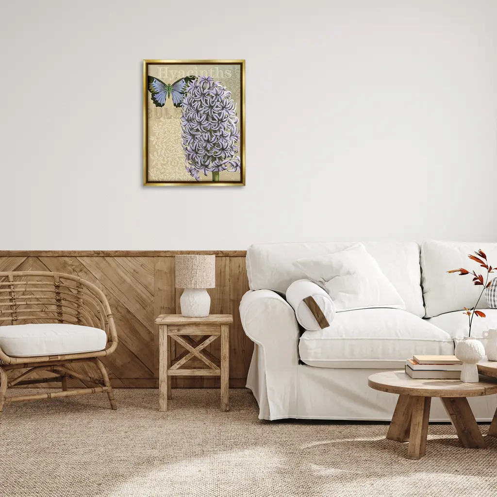 Stupell Hyacinth Pattern & Butterfly Framed Floater Canvas Wall Art Design By Gail Fraser - 25 X 31 - Gold