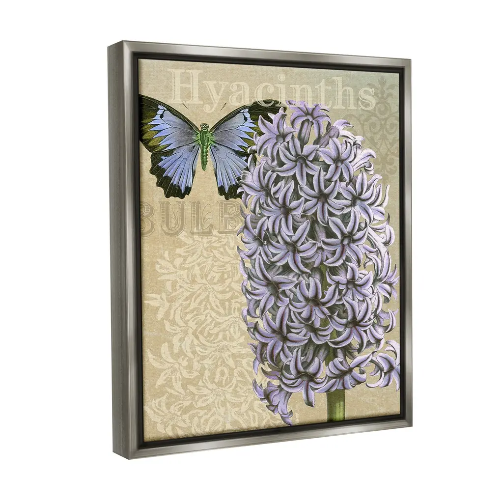 Elevate your home or office to the next level with Stupell Framed Floating Canvas Wall Art. Our premium hand-stretched canvas is mounted securely into a sturdy lightweight frame. The museum-style gap between the wrapped canvas and the box frame gives the illusion of floating artwork. Stupell Wall Art is made in the USA.Features: Dimensions: 17 x 1.7 x 21 Frame, 16 x 1.5 x 20 Canvas ArtFloating Frame Canvas Products are available in sizes 17"x21" and 25"x31". All Floating Frame Canvas Products have a 1.7" Depth.Wall Art is Ready to Hang with Hardware Free Hanging. No Installation required. For Easy Set Up Lean or Layer Artwork on Shelf or Against Wall. Artwork is Permently Fixed into the Frame.Our elevated 1.7" Thick Floating Frame is the perfect complement to our canvas style Wall Art. We use only the highest quality inks in house with industry leading printing solutions. Canvas is hand stretched over a durable wood foundation and then mounted securly into a Modern Box Frame. Made in the USA.Artwork Relates To: Flower, Plant, Painting, Floral, Flower, Hyacinth, Insect, Bug, Butterfly, Pattern, TypographyDesign by Gail Fraser