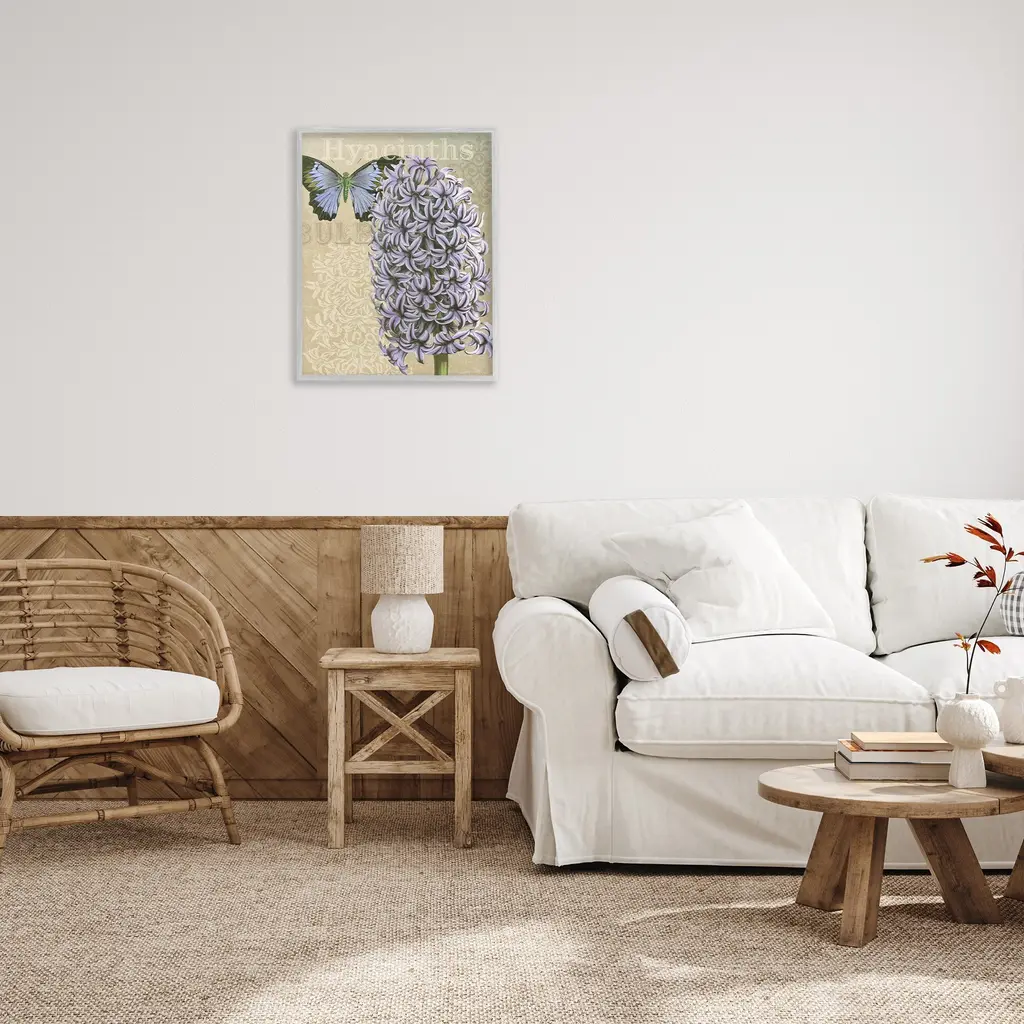 Add dimension to any room with our textured Framed Giclee Artwork. Our framed artwork is securely mounted into a 1.5-inch thick wood grain frame and ready to hang. Frames are available in three alluring styles: black, gray farmhouse and white. In addition, you should check out our oversized options if you want a statement piece. Stupell Wall Art is made in the USA.Features: Dimensions: 11 x 1.5 x 14 FramedFramed Giclee Products are available in the sizes 11"x14", 16"x20" or 24"x30". All Framed Giclee Products have a 1.5" Depth. Wall Art is Ready to Hang with Hardware Free Hanging. No installation required. For Easy Set Up Lean or Layer Artwork on Shelf or Against Wall.Our giclée prints are carefully mounted on a durable MDF backing, and then perfectly finished in a 1.5 inch thick woodgrain frame. Mounted frame colors include black, gray farmhouse and white. Made In USA.Artwork Relates To: Flower, Plant, Painting, Floral, Flower, Hyacinth, Insect, Bug, Butterfly, Pattern, TypographyDesign by Gail Fraser