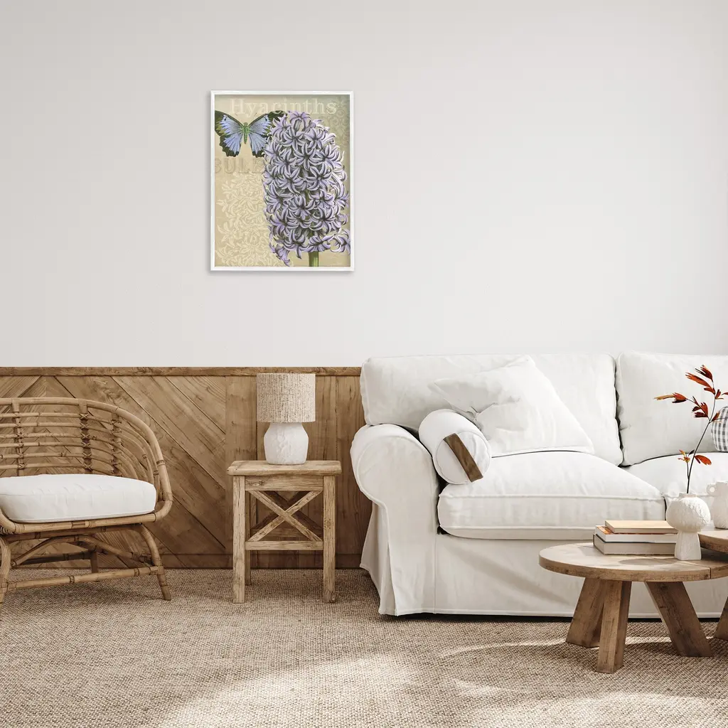 Stupell Hyacinth Pattern & Butterfly Framed Giclee Art Design By Gail Fraser - 24 X 30 - White