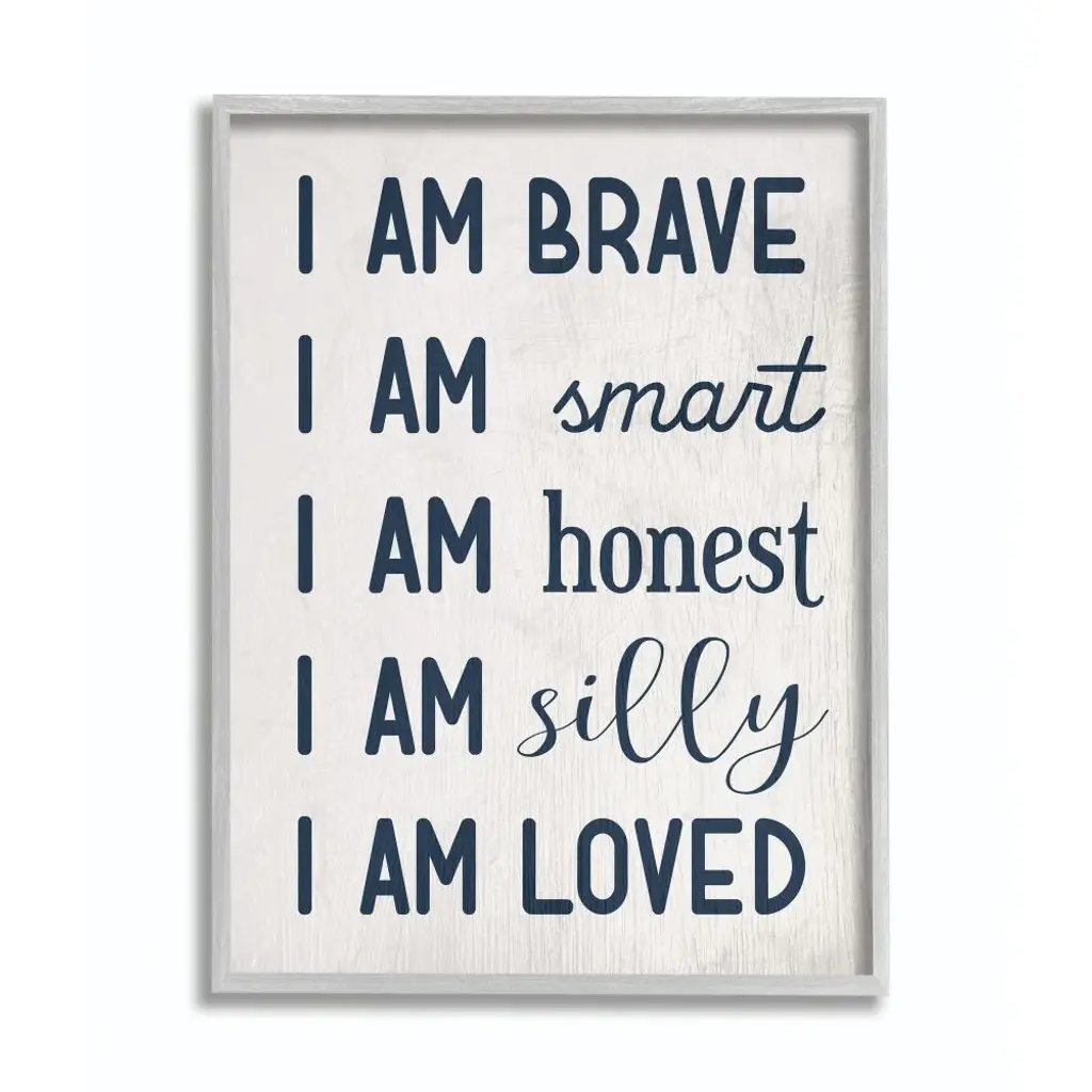 Stupell I Am Loved Family Kids Word Blue Design Framed Wall Art, Design By Artist Daphne Polselli - 16 X 20 - Grey