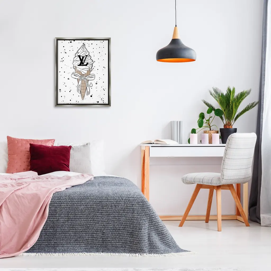 Elevate your home or office to the next level with Stupell Framed Floating Canvas Wall Art. Our premium hand-stretched canvas is mounted securely into a sturdy lightweight frame. The museum-style gap between the wrapped canvas and the box frame gives the illusion of floating artwork. Stupell Wall Art is made in the USA.Features: Dimensions: 17 x 1.7 x 21 Frame, 16 x 1.5 x 20 Canvas ArtFloating Frame Canvas Products are available in sizes 17"x21" and 25"x31". All Floating Frame Canvas Products have a 1.7" Depth.Wall Art is Ready to Hang with Hardware Free Hanging. No Installation required. For Easy Set Up Lean or Layer Artwork on Shelf or Against Wall. Artwork is Permently Fixed into the Frame.Our elevated 1.7" Thick Floating Frame is the perfect complement to our canvas style Wall Art. We use only the highest quality inks in house with industry leading printing solutions. Canvas is hand stretched over a durable wood foundation and then mounted securly into a Modern Box Frame. Made in the USA.Artwork Relates To: Dessert, Ice Cream, Modern, Pattern, Glam, FashionDesign by Martina Pavlova