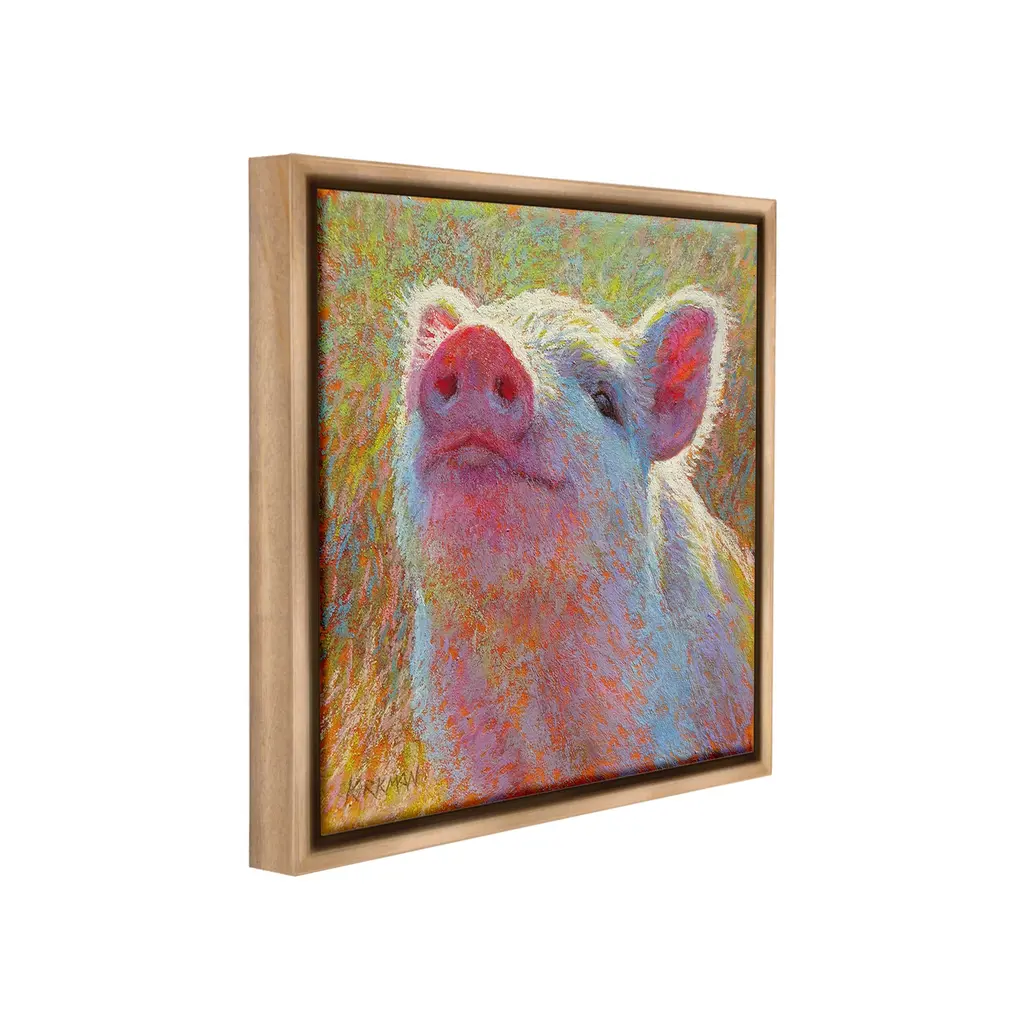 Elevate your home or office to the next level with Stupell Framed Floating Canvas Wall Art. Our premium hand-stretched canvas is mounted securely into a sturdy lightweight frame. The museum-style gap between the wrapped canvas and the box frame gives the illusion of floating artwork. Stupell Wall Art is made in the USA.Features: Dimensions: 18 x 1.7 x 18 Frame, 17 x 1.5 x 17 Canvas ArtFloating Frame Canvas Products are available in sizes 18"x18" and 25"x25". All Floating Frame Canvas Products have a 1.7" Depth.Wall Art is Ready to Hang with Hardware Free Hanging. No Installation required. For Easy Set Up Lean or Layer Artwork on Shelf or Against Wall. Artwork is Permently Fixed into the Frame.Our elevated 1.7" Thick Floating Frame is the perfect complement to our canvas style Wall Art. We use only the highest quality inks in house with industry leading printing solutions. Canvas is hand stretched over a durable wood foundation and then mounted securly into a Modern Box Frame. Made in the USA.Artwork Relates To: Painting, Animal, Mammal, Abstract, Traditional, Farm, Country, PigDesign by Rita Kirkman