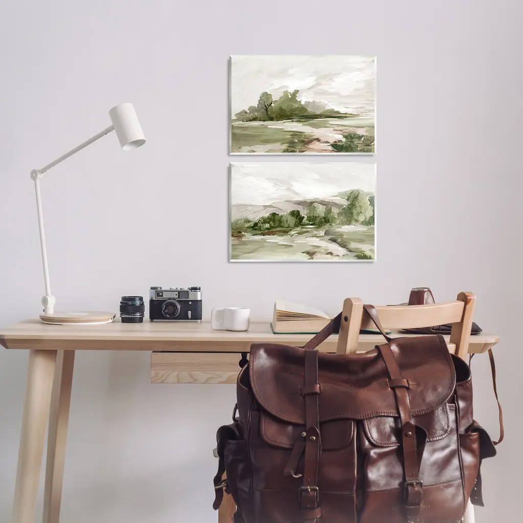 Fill any space with Stupell Wall Art Sets. Our wall plaques start as high-quality lithograph prints mounted on durable 0.5-inch thick MDF wood. Each piece is hand finished and comes with a fresh layer of white foil on the sides to give it a crisp, clean look. Plaques arrive ready to hang without installation and come with removable plastic corners to keep them from damage in transit. Stupell Wall Art is made in the USA.Features: Dimensions: 2 Piece Set, Each Panel is 15 x 0.5 x 10 InchesTwo Piece Wall Plaque Sets are available as 15"x10" or 19"x13" Panels. All Wall Art Plaques have a 0.5" Depth.Wall Art is Ready to Hang with Hardware Free Hanging. No installation required. For Easy Set Up Lean or Layer Artwork on Shelf or Against Wall.All of our wall plaques start off as high quality lithograph prints that are then mounted on durable 0.5 inch thick MDF wood. Each piece is hand finished and comes with a fresh layer of foil on the sides to give it a crisp clean look. Made In USA.Artwork Relates To: Landscape, Nature, Abstract, Modern, CountryDesign by Lera