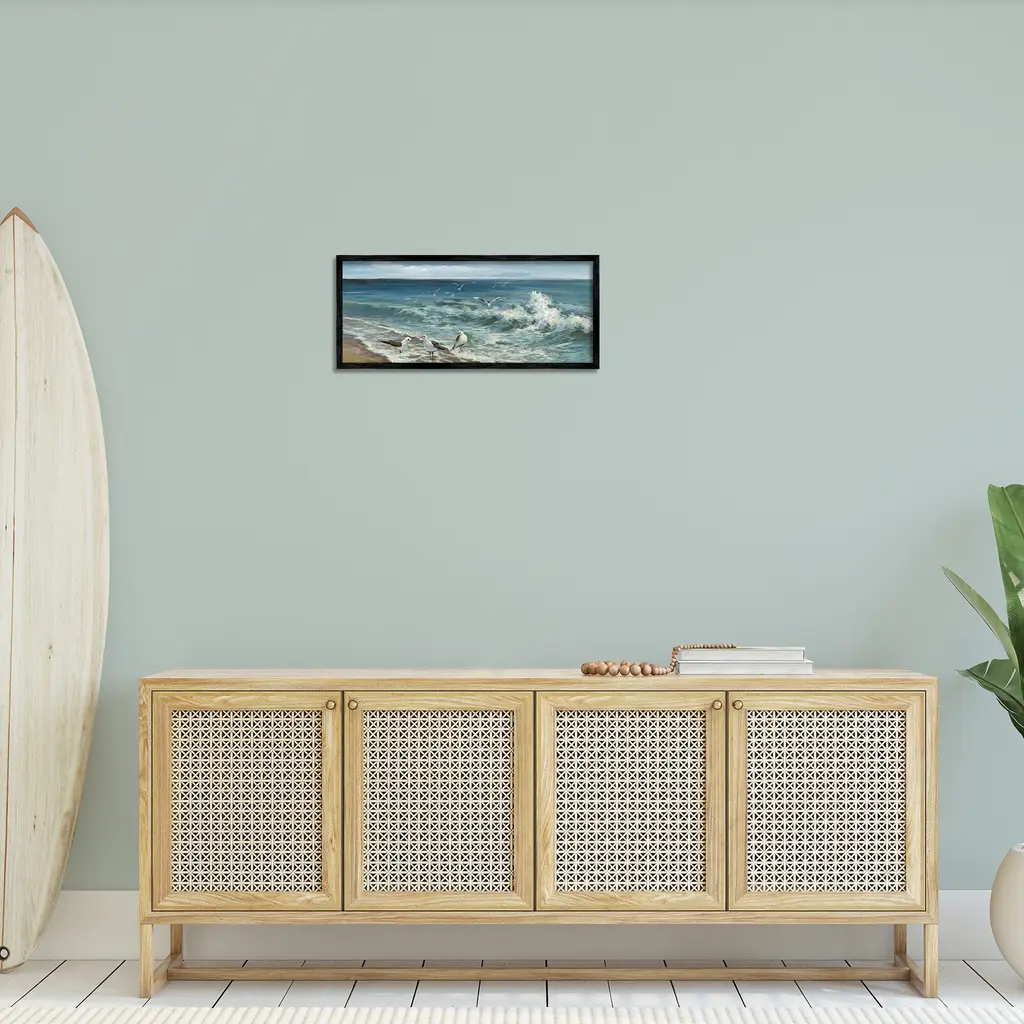 Add dimension to any room with our textured Framed Giclee Artwork. Our framed artwork is securely mounted into a 1.5-inch thick wood grain frame and ready to hang. Frames are available in three alluring styles: black, gray farmhouse and white. In addition, you should check out our oversized options if you want a statement piece. Stupell Wall Art is made in the USA.Features: Dimensions: 24 x 1.5 x 10 FramedFramed Giclee Product Sizes include 24"x10" and 30"x13". All Framed Giclee products have a 1.5" Depth.Wall Art is Ready to Hang with Hardware Free Hanging. No installation required. For Easy Set Up Lean or Layer Artwork on Shelf or Against Wall.Our giclée prints are carefully mounted on a durable MDF backing, and then perfectly finished in a 1.5 inch thick woodgrain frame. Mounted frame colors include black, gray farmhouse and white. Made In USA.Artwork Relates To: Nautical, Beach, Shore, Coast, Landscape, Waves, Bird, SeagullDesign by Heather Hayes