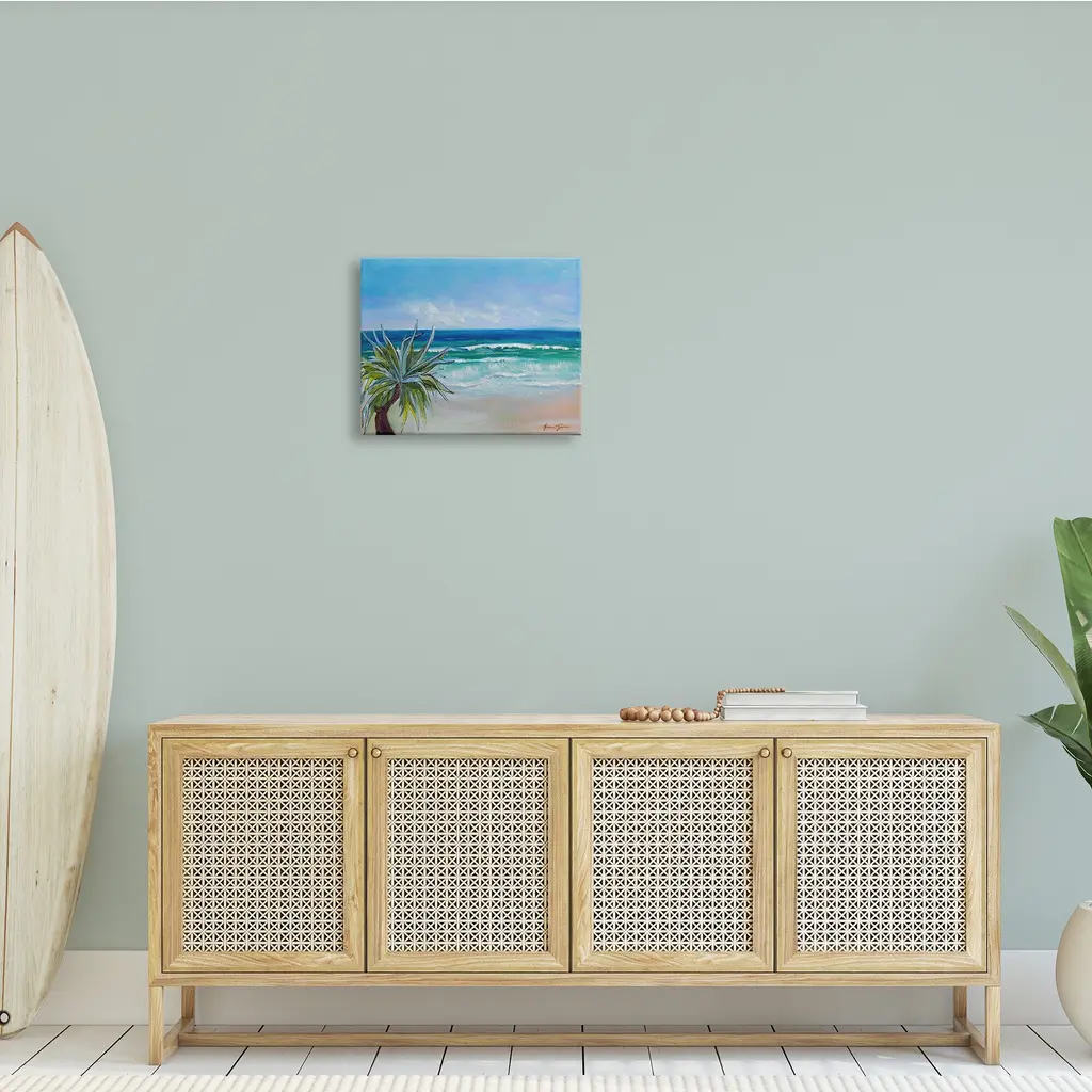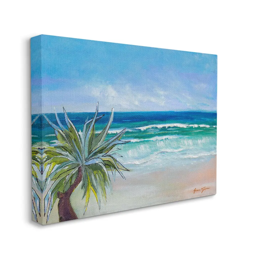 Stupell Incoming Waves Summer Beach Palm Tree Blue Painting Canvas Wall Art - Orange - 20 X 16
