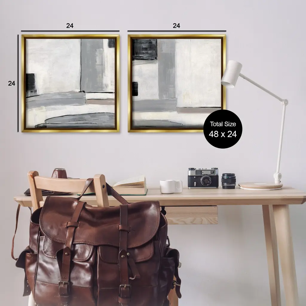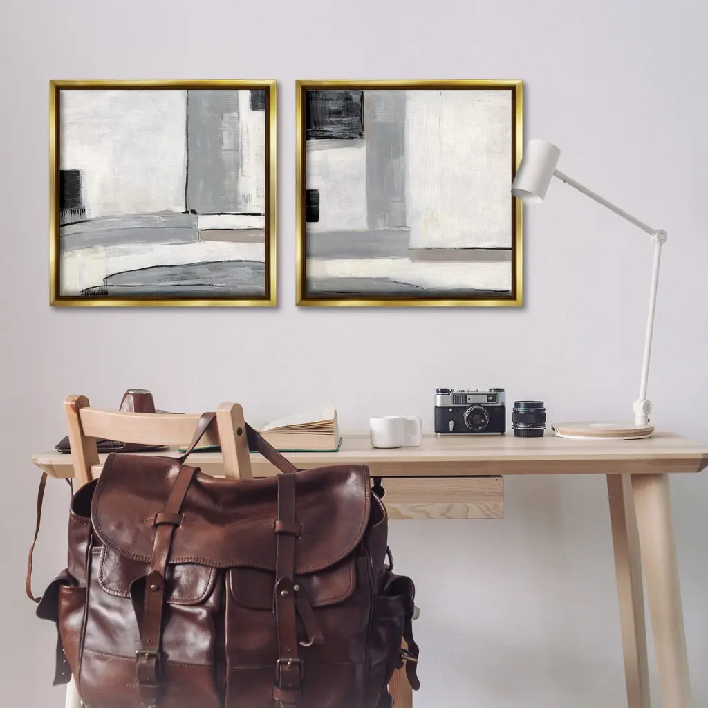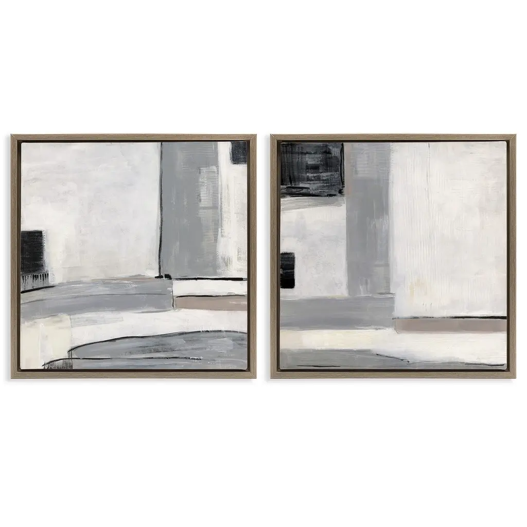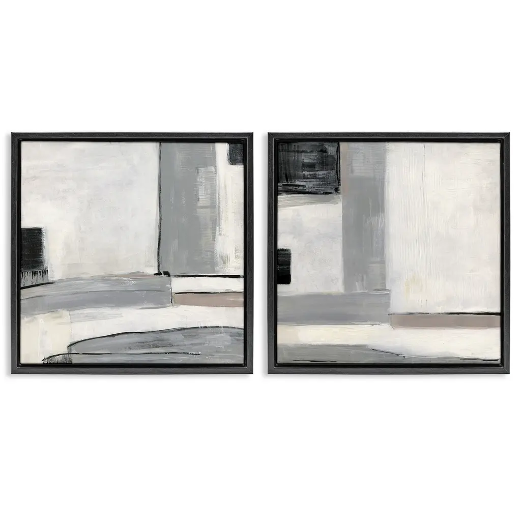 Elevate your home or office to the next level with Stupell Framed Floating Canvas Wall Art. Our premium hand-stretched canvas is mounted securely into a sturdy lightweight frame. The museum-style gap between the wrapped canvas and the box frame gives the illusion of floating artwork. Stupell Wall Art is made in the USA.Features: Dimensions: 2 Piece Set, Each Frame is 18 x 1.7 x 18Two Piece Floating Frame Canvas Products are available as 18"x18" or 25"x25" Panels. All Floating Frame Canvas Products have a 1.7" Depth.Wall Art is Ready to Hang with Hardware Free Hanging. No Installation required. For Easy Set Up Lean or Layer Artwork on Shelf or Against Wall. Artwork is Permently Fixed into the Frame.Our elevated 1.7" Thick Floating Frame is the perfect complement to our canvas style Wall Art. We use only the highest quality inks in house with industry leading printing solutions. Canvas is hand stretched over a durable wood foundation and then mounted securly into a Modern Box Frame. Made in the USA.Artwork Relates To: Painting, Modern, Urban, Abstract, GeometricDesign by Sally Swatland