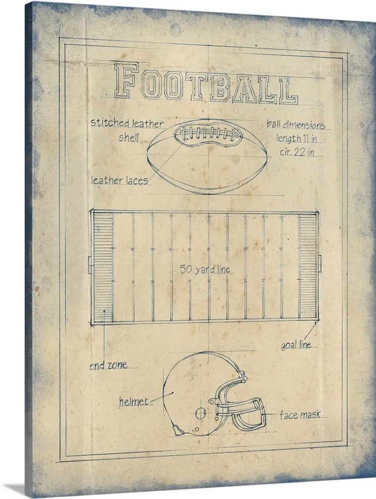 Stupell Industries Football Blueprint Vintage Sports Design, 30"x40" , Canvas