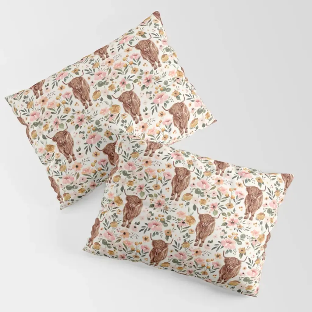 Stupell Industries Highland Cow Floral Portrait Outdoor Decorative Throw Pillow, 18 X 18
