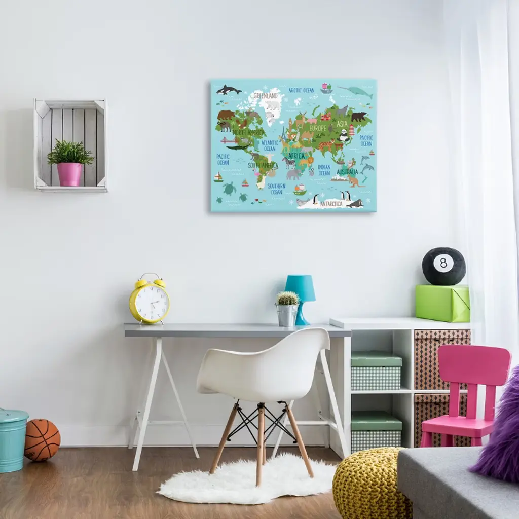 Stupell Industries Kid's Favorite Animals World Map Canvas Art, 40" X 30"