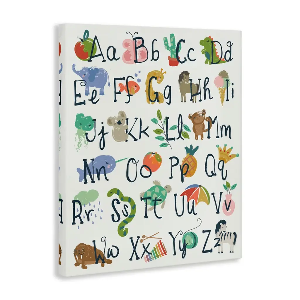 Stupell Industries Kids' Safari Animal Alphabet Illustrations Canvas Art, 24" X 30"