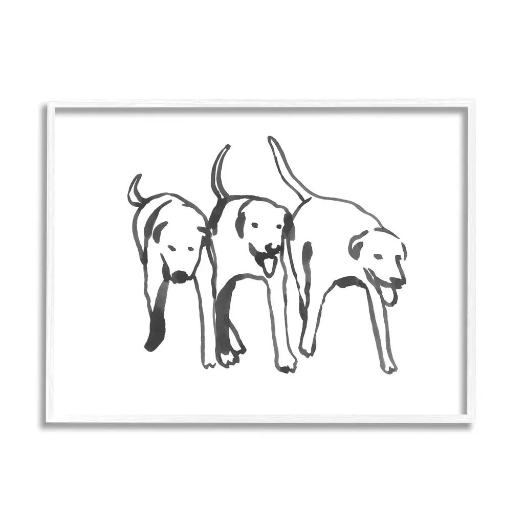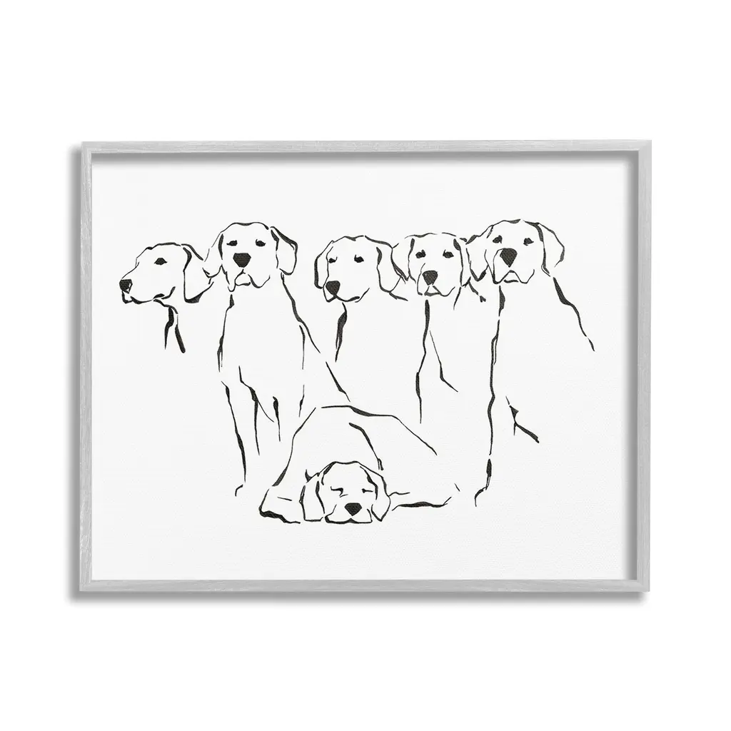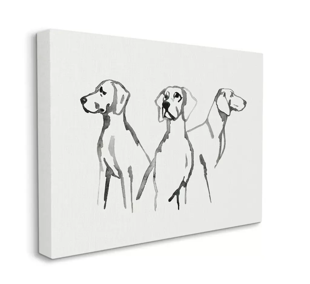 Stupell Industries Trio of Dogs Minimal Black Grey Pet Sketch Gallery Wrapped Canvas Wall Art, 30 x 40