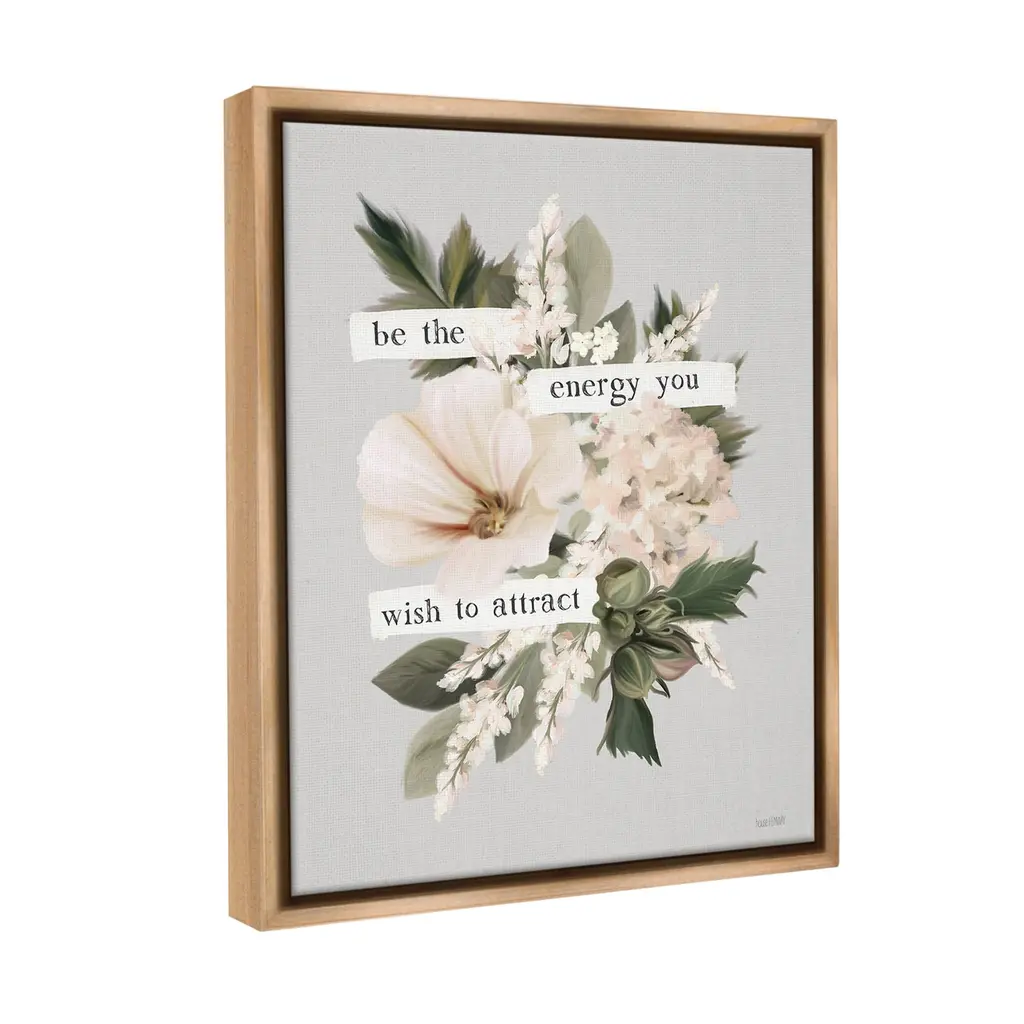 Elevate your home or office to the next level with Stupell Framed Floating Canvas Wall Art. Our premium hand-stretched canvas is mounted securely into a sturdy lightweight frame. The museum-style gap between the wrapped canvas and the box frame gives the illusion of floating artwork. Stupell Wall Art is made in the USA.Features: Dimensions: 17 x 1.7 x 21 Frame, 16 x 1.5 x 20 Canvas ArtFloating Frame Canvas Products are available in sizes 17"x21" and 25"x31". All Floating Frame Canvas Products have a 1.7" Depth.Wall Art is Ready to Hang with Hardware Free Hanging. No Installation required. For Easy Set Up Lean or Layer Artwork on Shelf or Against Wall. Artwork is Permently Fixed into the Frame.Our elevated 1.7" Thick Floating Frame is the perfect complement to our canvas style Wall Art. We use only the highest quality inks in house with industry leading printing solutions. Canvas is hand stretched over a durable wood foundation and then mounted securly into a Modern Box Frame. Made in the USA.Artwork Relates To: Floral, Flower, Border, Blossom, Cottage, Phrase, Vintage, Inspirational, Be The Energy You Wish To AttractDesign by House Fenway