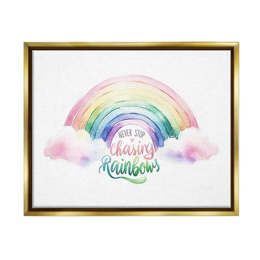Add dimension to any room with our textured Framed Giclee Artwork. Our framed artwork is securely mounted into a 1.5-inch thick wood grain frame and ready to hang. Frames are available in three alluring styles: black, gray farmhouse and white. In addition, you should check out our oversized options if you want a statement piece. Stupell Wall Art is made in the USA.Features: Dimensions: 14 x 1.5 x 11 FramedFramed Giclee Products are available in the sizes 14"x11", 20"x16" or 30"x24". All Framed Giclee Products have a 1.5" Depth. Wall Art is Ready to Hang with Hardware Free Hanging. No installation required. For Easy Set Up Lean or Layer Artwork on Shelf or Against Wall.Our giclée prints are carefully mounted on a durable MDF backing, and then perfectly finished in a 1.5 inch thick woodgrain frame. Mounted frame colors include black, gray farmhouse and white. Made In USA.Artwork Relates To: Landscape, Nature, Cloud, Rainbow, Pastel, Inspirational, Phrase, Heart, Never Stop Chasing RainbowsDesign by Amanda Greenwood