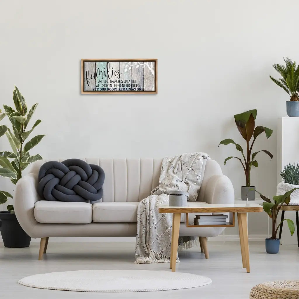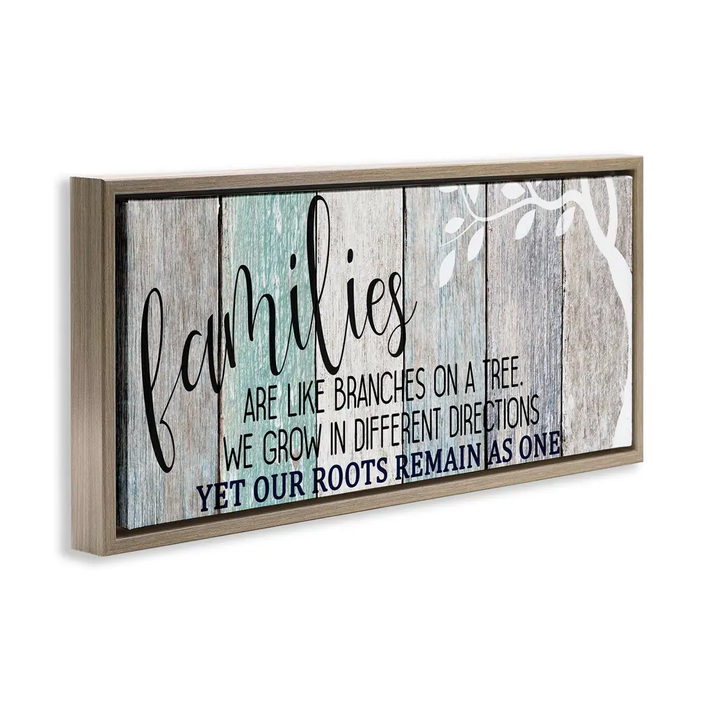 Stupell Inspirational Families Are Branches Quote Framed Floater Canvas Wall Art Design By Kim Allen - 25 X 11 - Brown