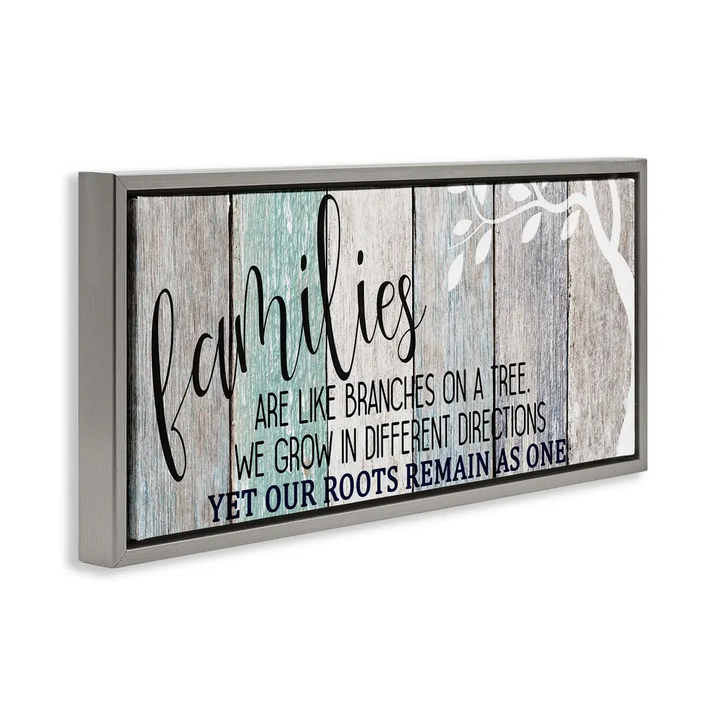 Stupell Inspirational Families Are Branches Quote Framed Floater Canvas Wall Art Design By Kim Allen - 31 X 14 - Grey